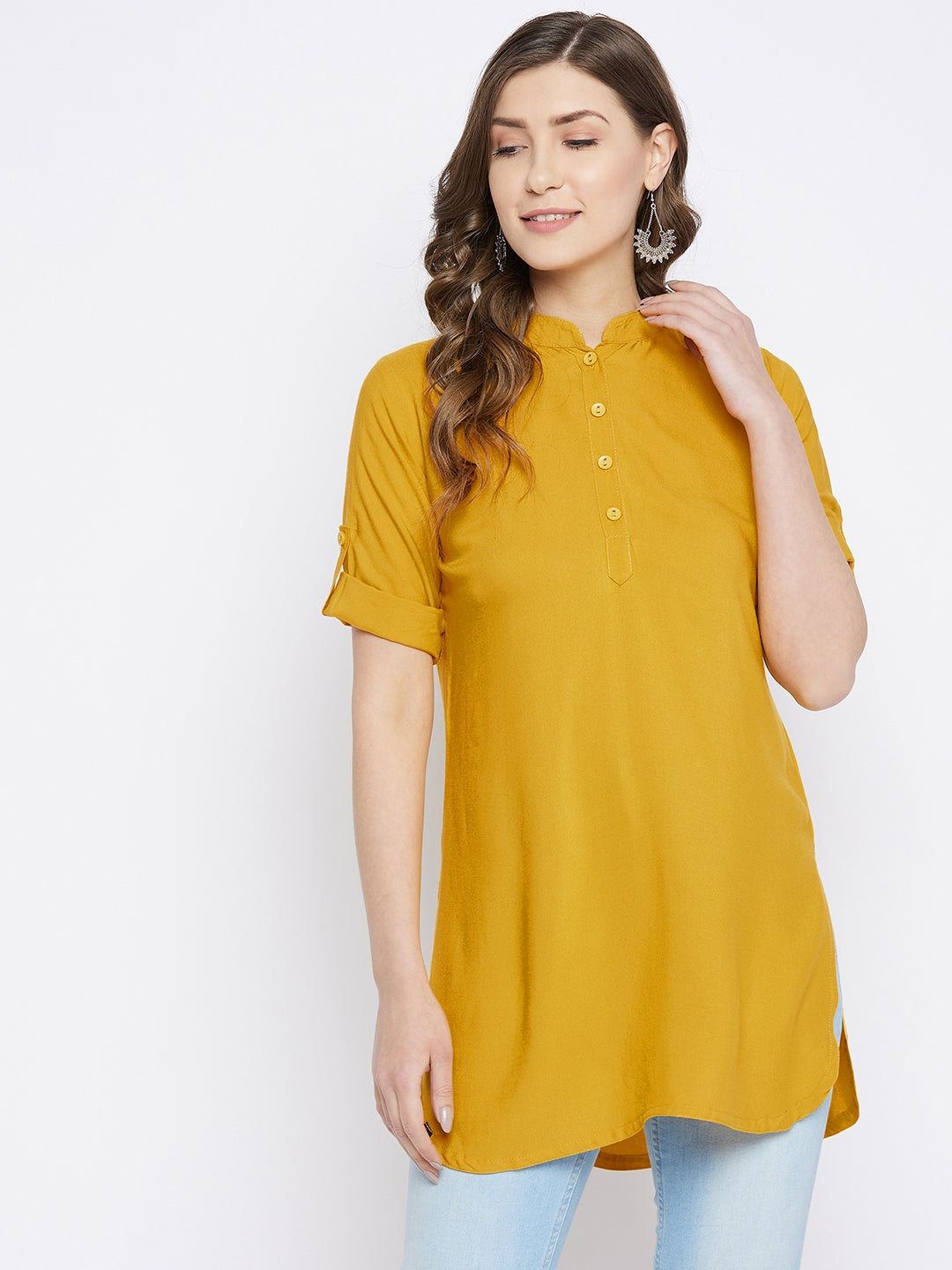 Mustard/Yellow Solid coloured short Kurti - 32" Length
