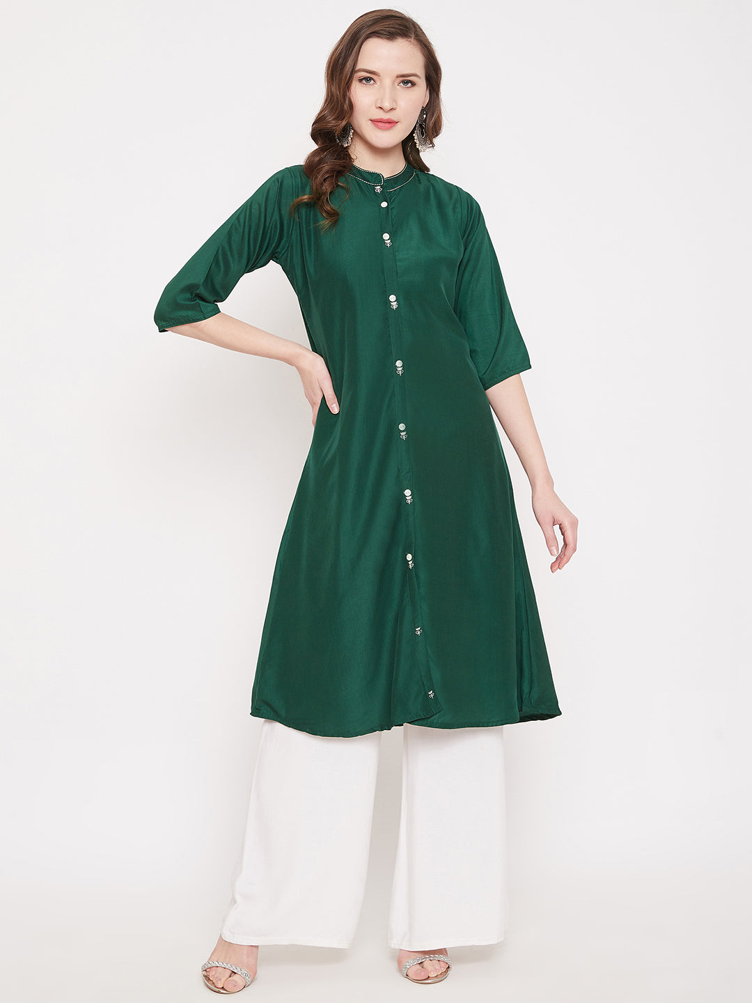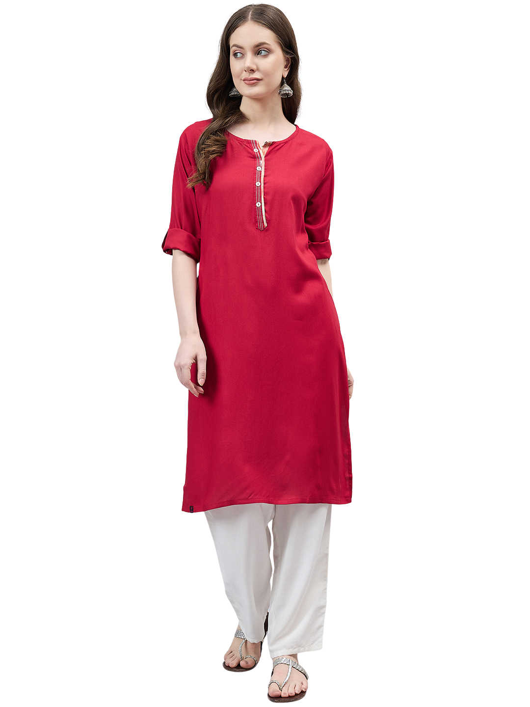 Description Upgrade your wardrobe with this Thread Work A-Line Kurta, featuring a round neck, roll-up sleeves, and intricate threadwork. Made from soft and breathable viscose rayon, this knee-len... -