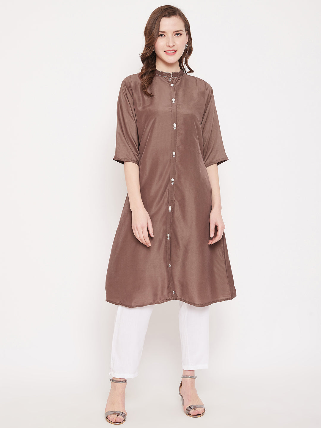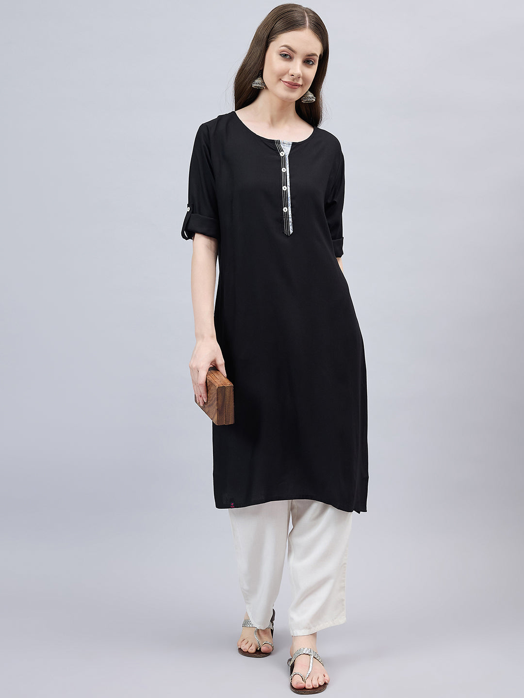 Dark Grey Round Neck Straight Fit Rayon Kurti