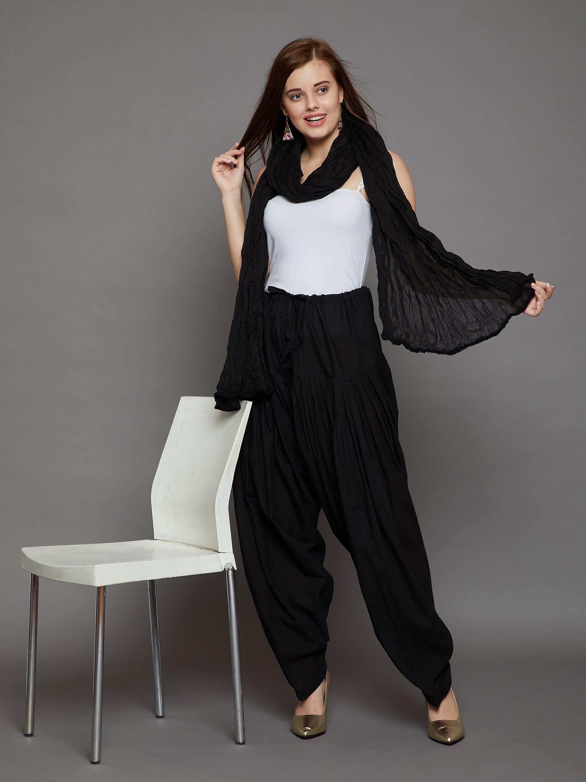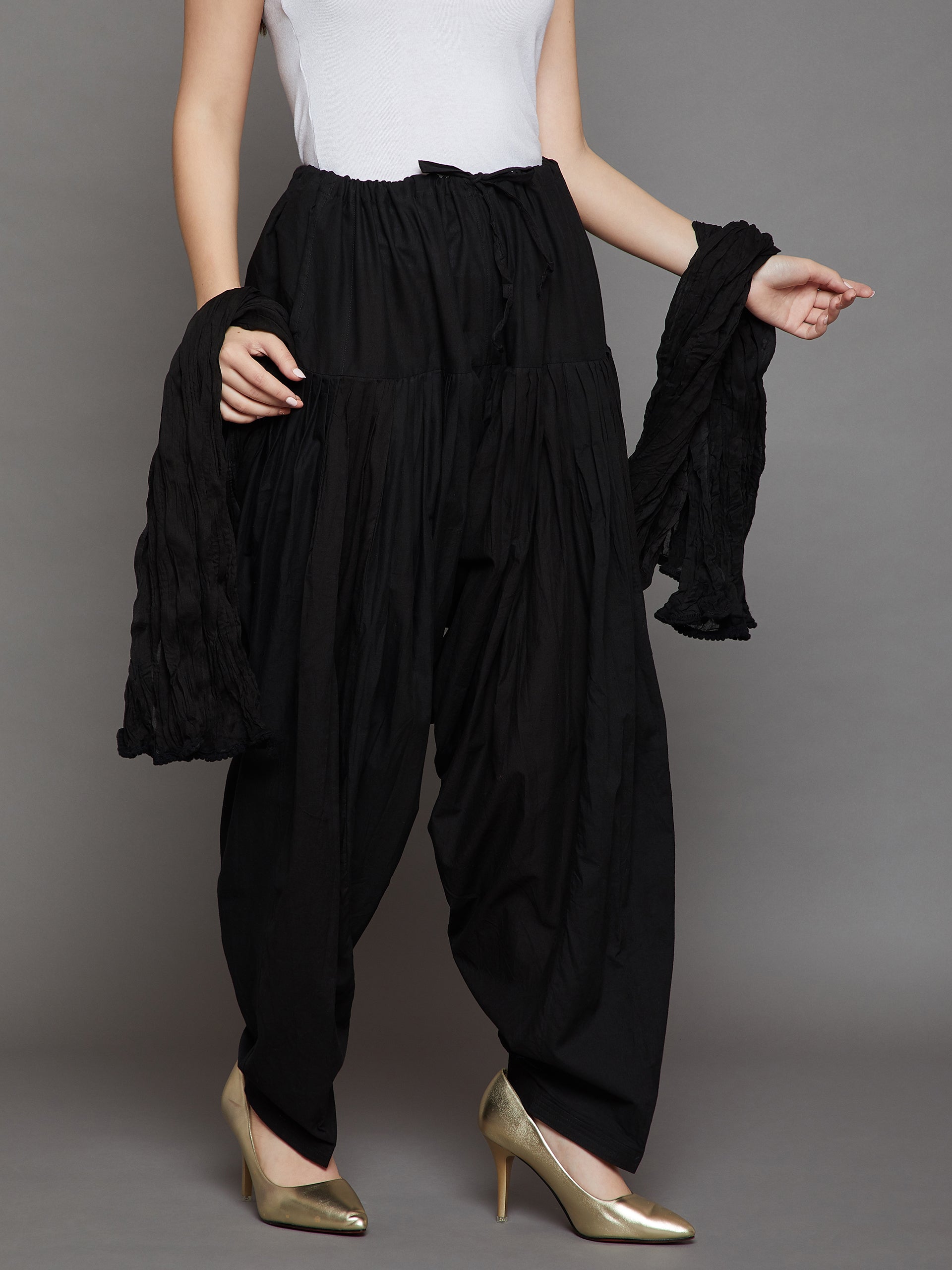 Black Cotton Plain Patiala with Dupatta