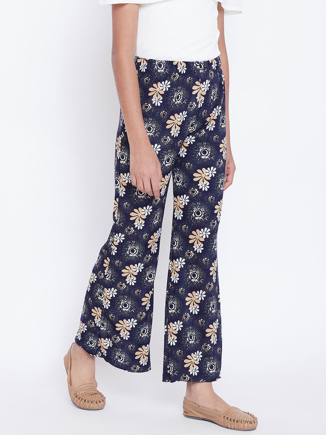Pair these printed palazzos with a solid-color top or a graphic tee for a chic casual look. Add a pair of sneakers for a sporty vibe or sandals for a more relaxed outfit.