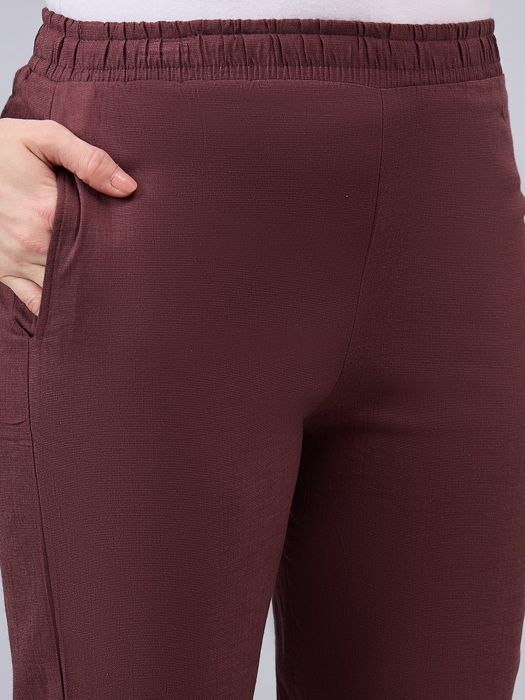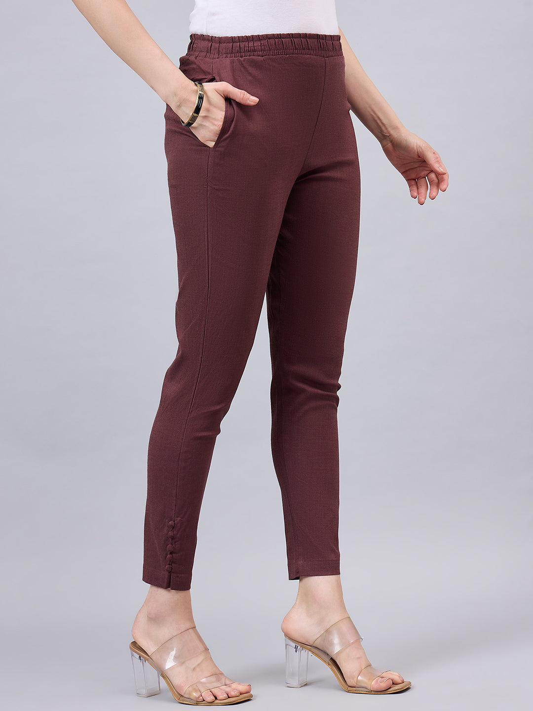 Elevate your everyday style with these chic Potli Slim Fit Trousers. Crafted from premium Lycra Rayon fabric, they offer a comfortable stretch and a soft touch. The flat-front design with a sleek silhouette ensures a polished look, while the elasticated waistband and slip-on closure provide ease of wear. These ankle-length trousers feature a mid-rise fit with a 23-inch inseam, making them perfect for both casual and semi-formal occasions.