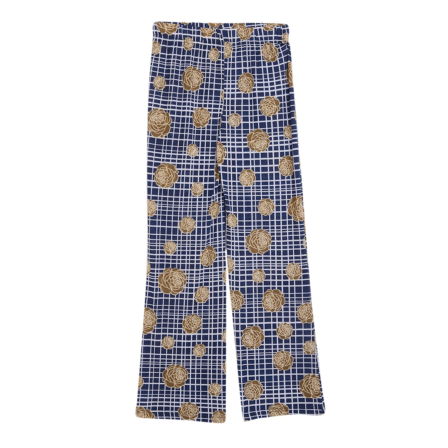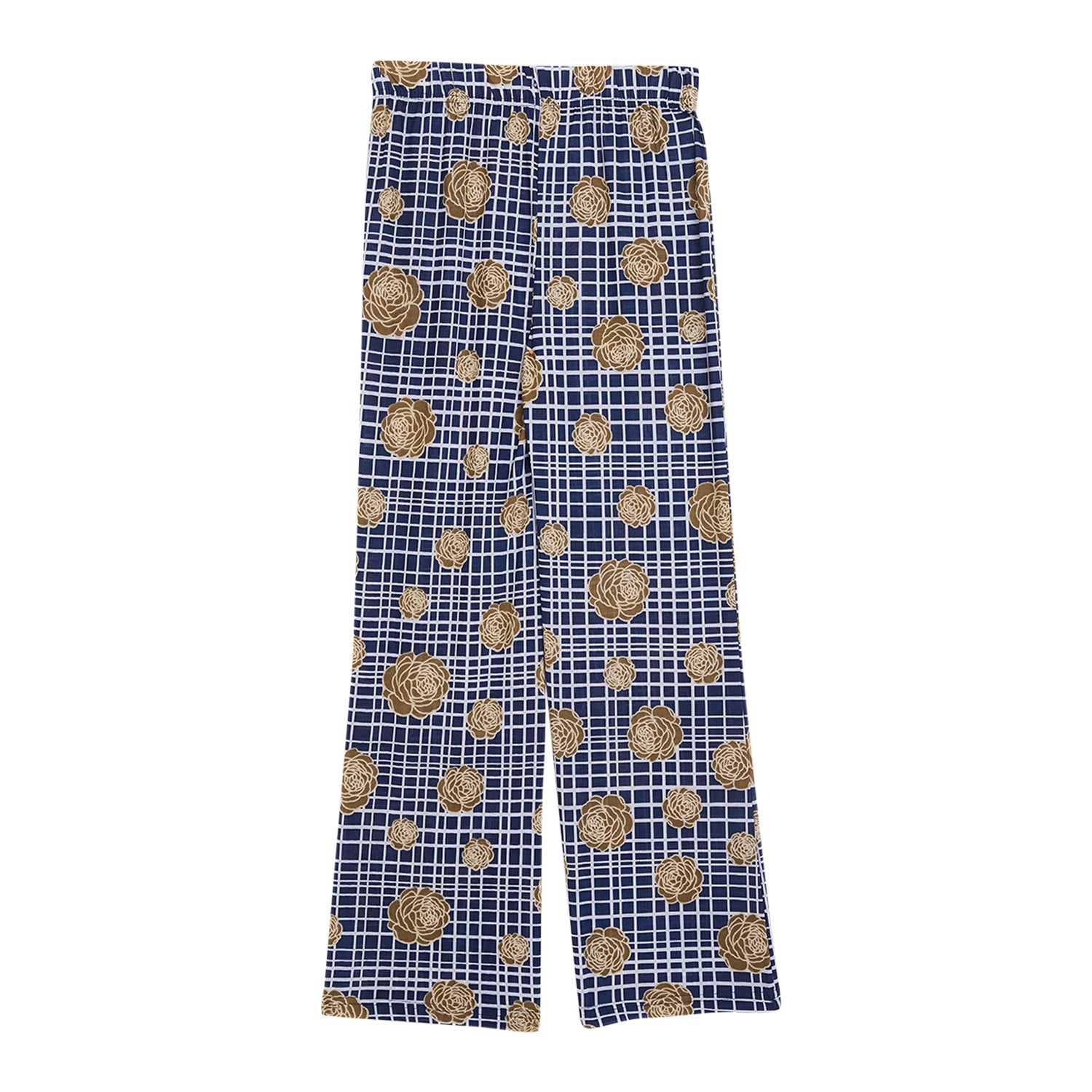 Kids Blue Checks with Brown Flower Printed Palazzo