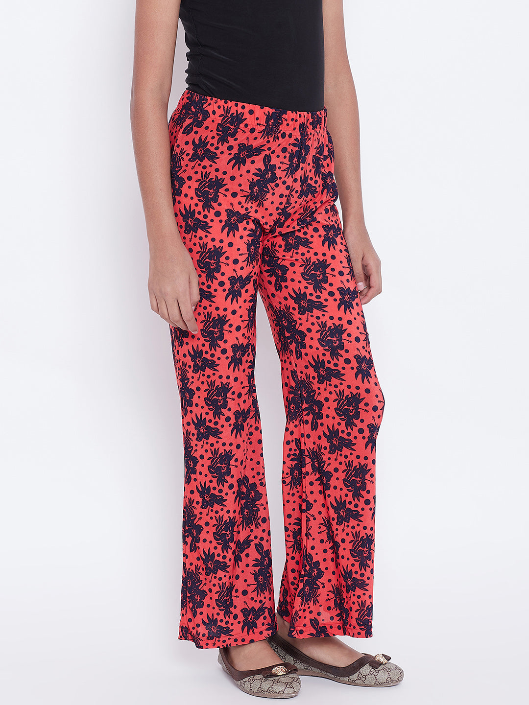 Pair these printed palazzos with a solid-color top or a graphic tee for a chic casual look. Add a pair of sneakers for a sporty vibe or sandals for a more relaxed outfit.