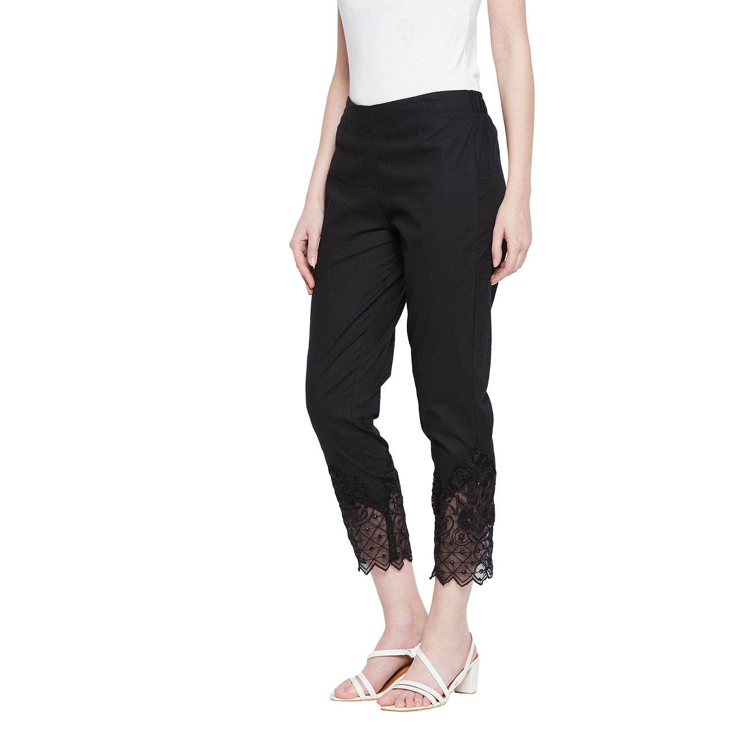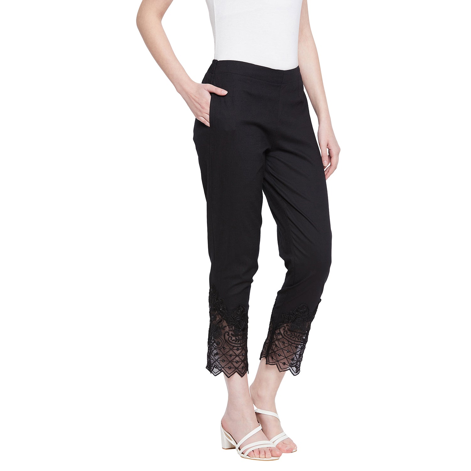 Black Embroidery Lace Cotton Lycra Pants