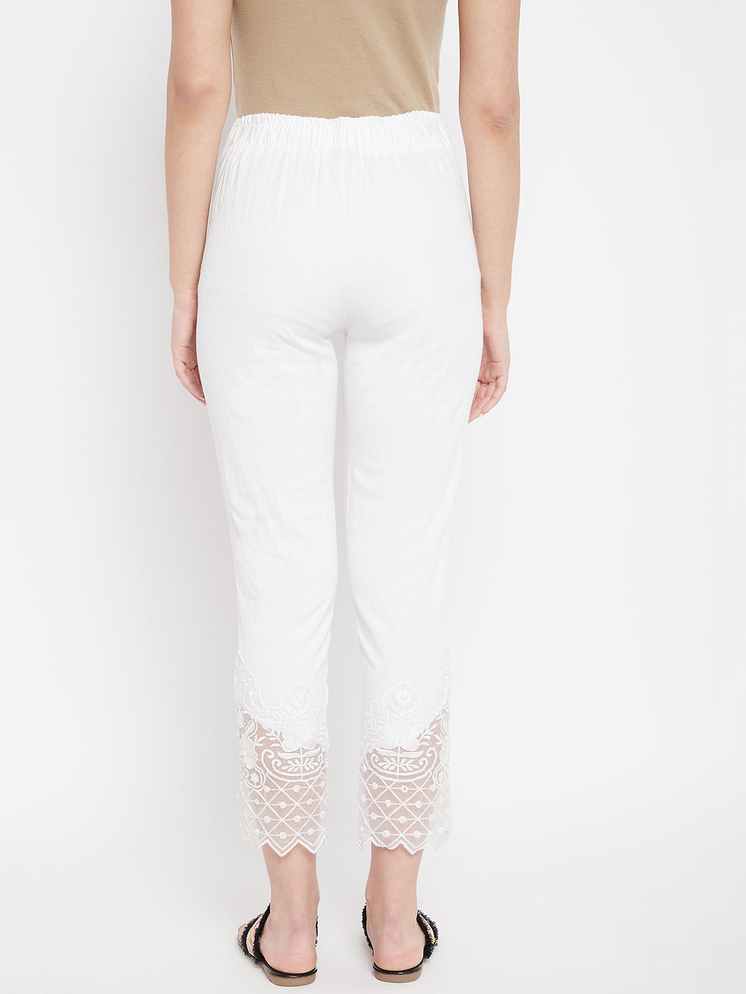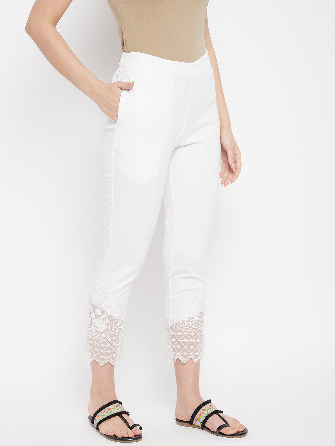Experience the perfect blend of elegance and comfort with our Black Lace Cotton Lycra Pants. These pants are designed to complement your style effortlessly.