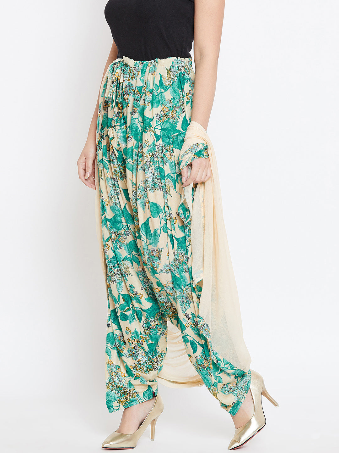 Team this Patiala set with a solid or embroidered short Kurti, add statement earrings, and slip on mojris or wedges for a sophisticated ethnic look.