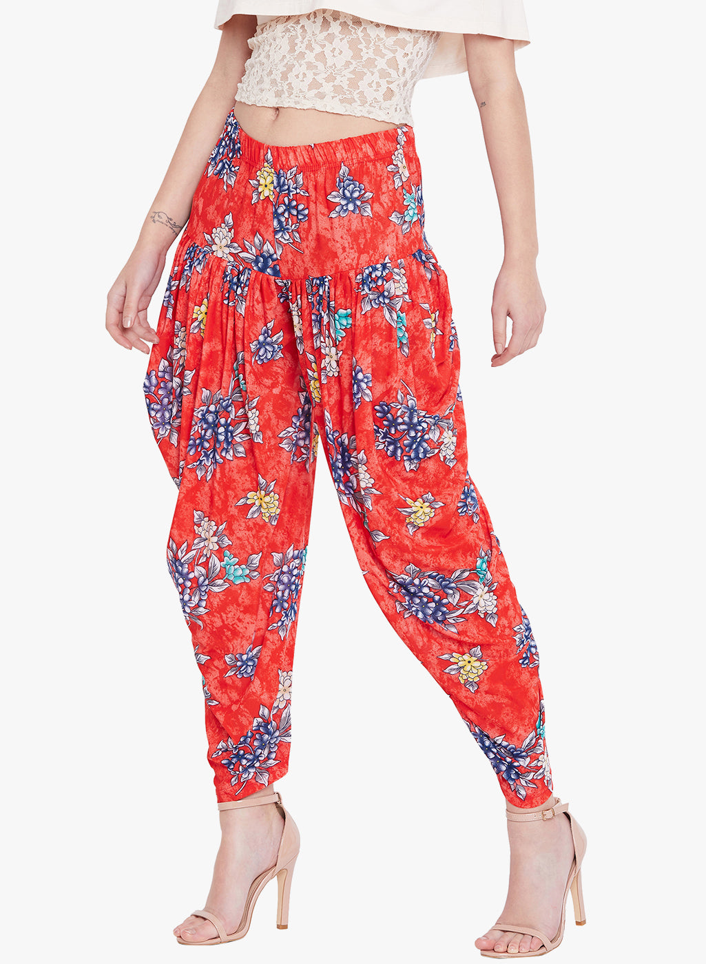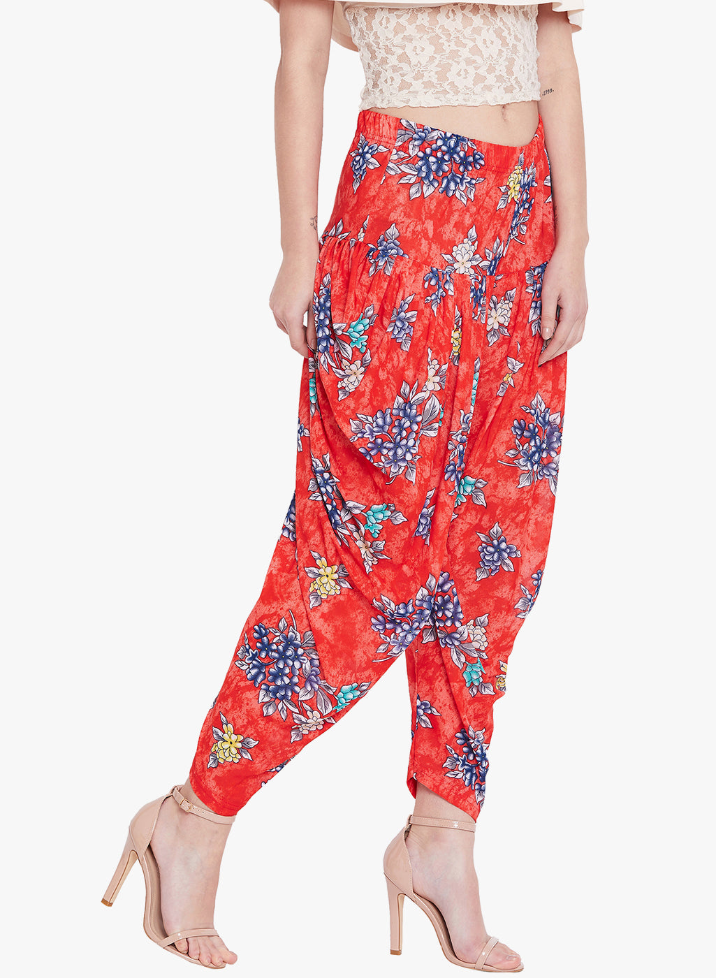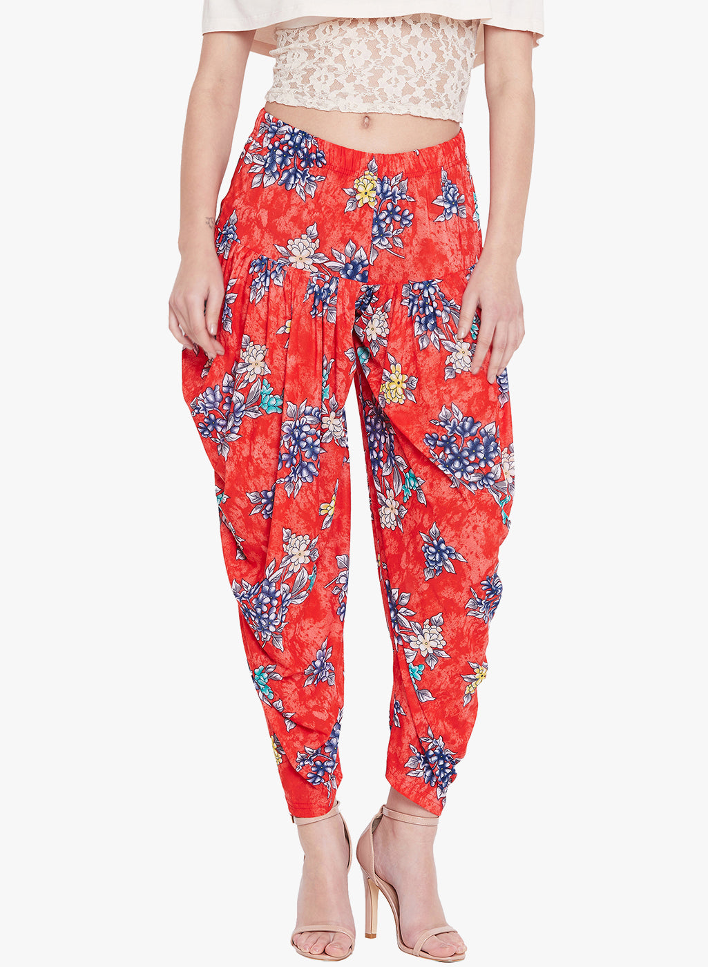 Floral Red Printed Dhoti