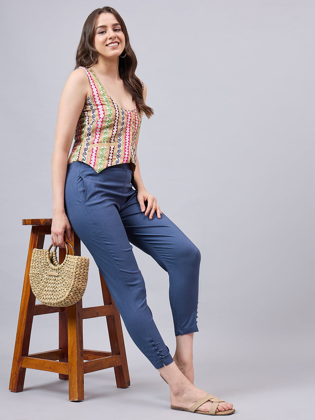 - Length & Fit: Ankle-length, mid-rise, and slim fit for a tailored look.