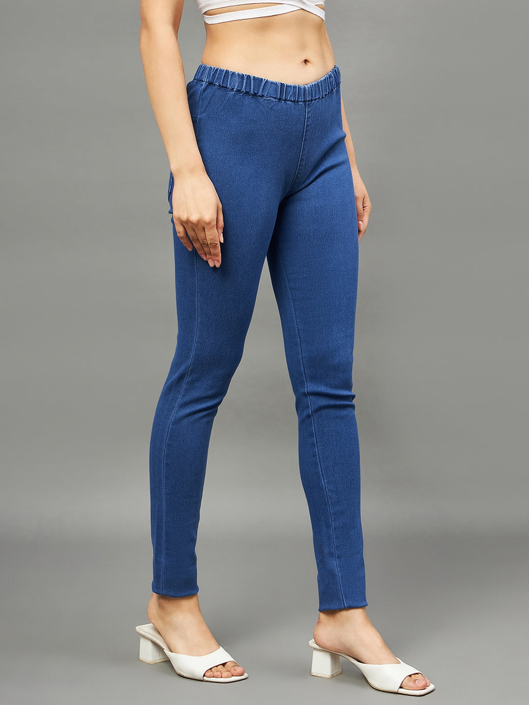 Upgrade your wardrobe with these Mid-Rise Denim Lycra Jeggings, designed for everyday comfort and chic style.