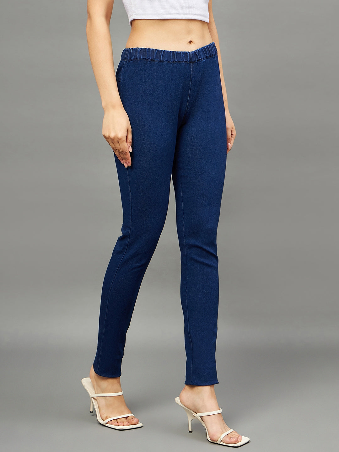 Upgrade your wardrobe with these Mid-Rise Denim Lycra Jeggings, designed for everyday comfort and chic style.