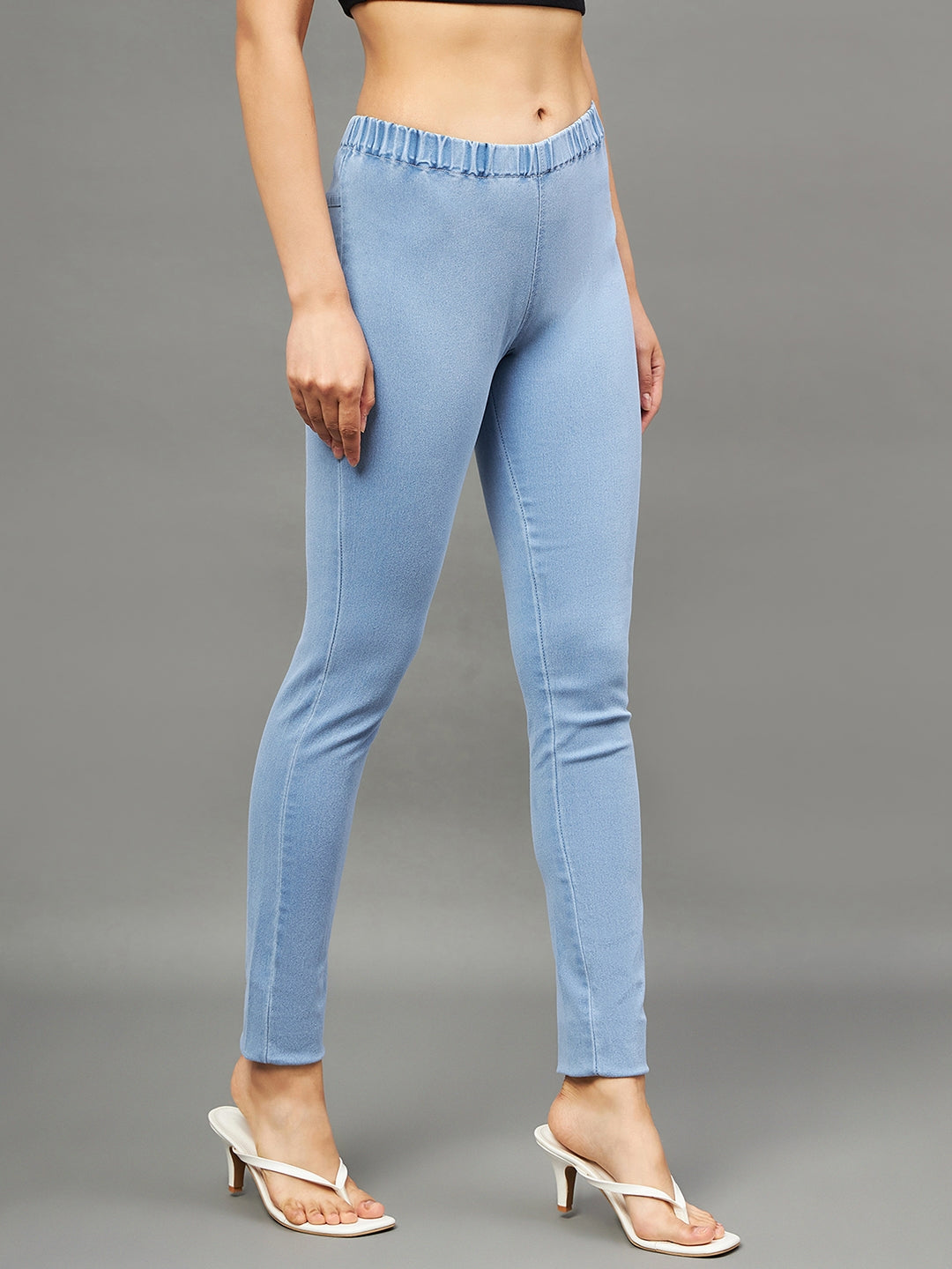 Upgrade your wardrobe with these Mid-Rise Denim Lycra Jeggings, designed for everyday comfort and chic style.