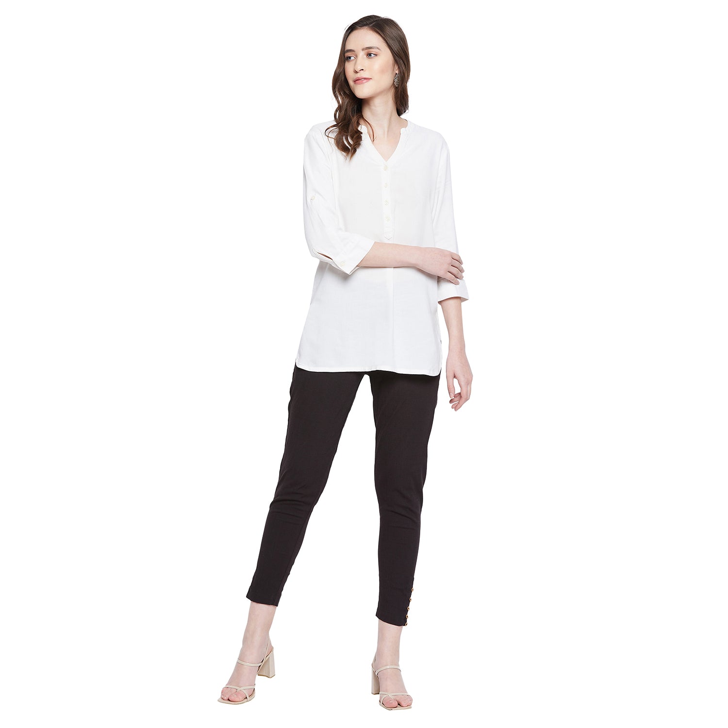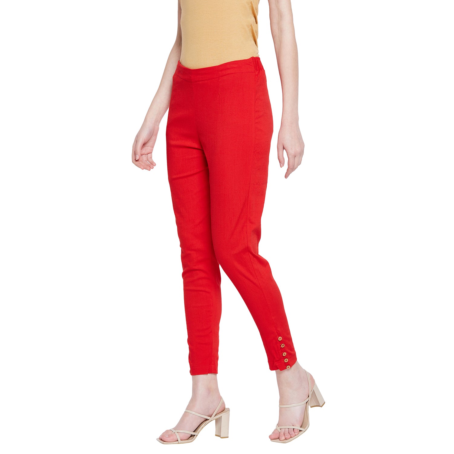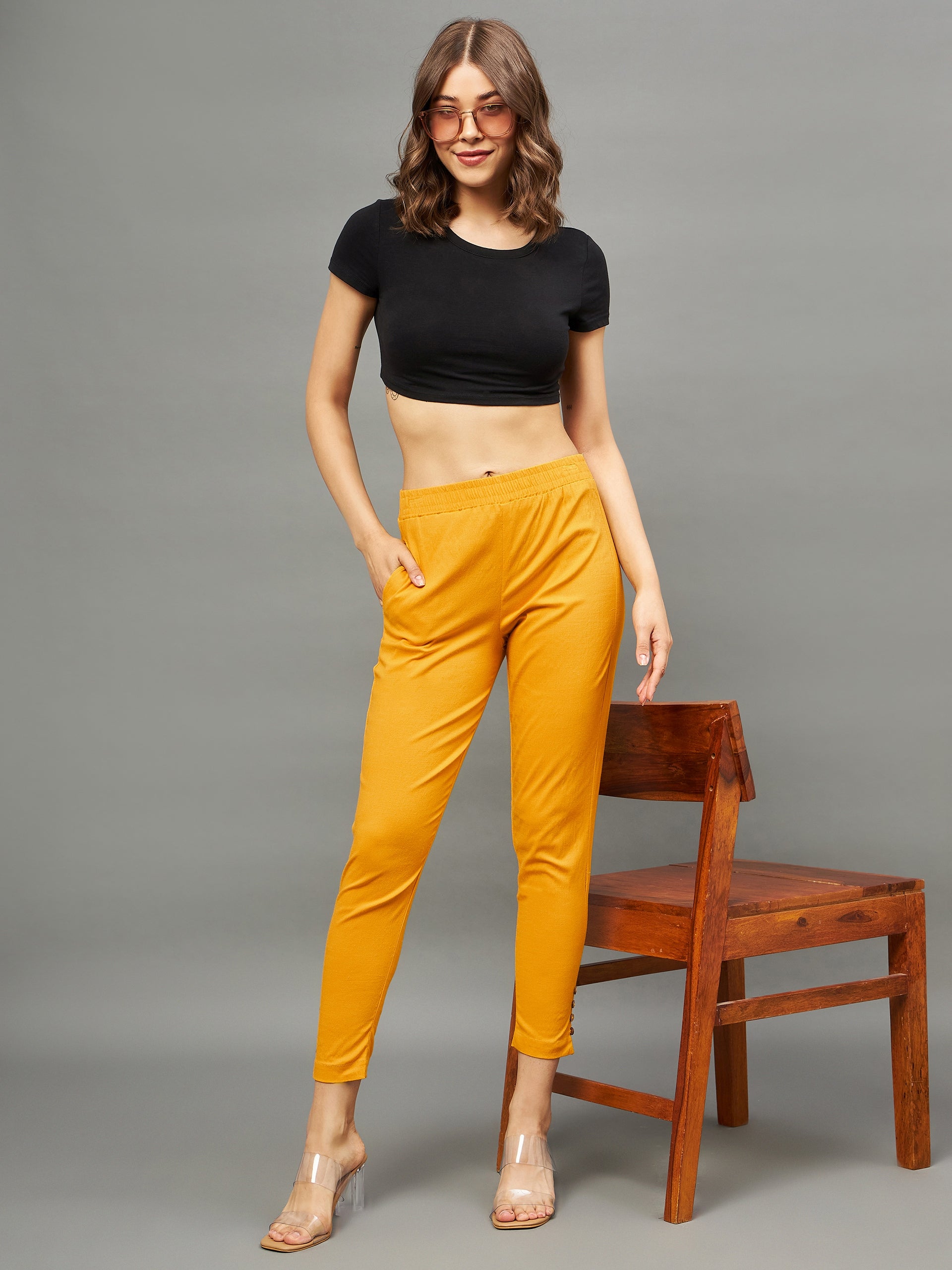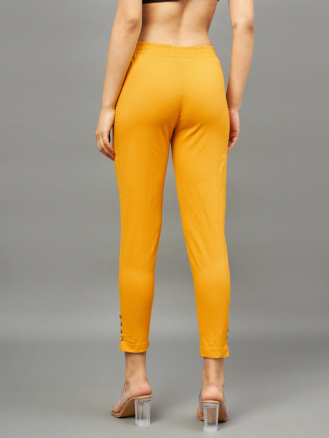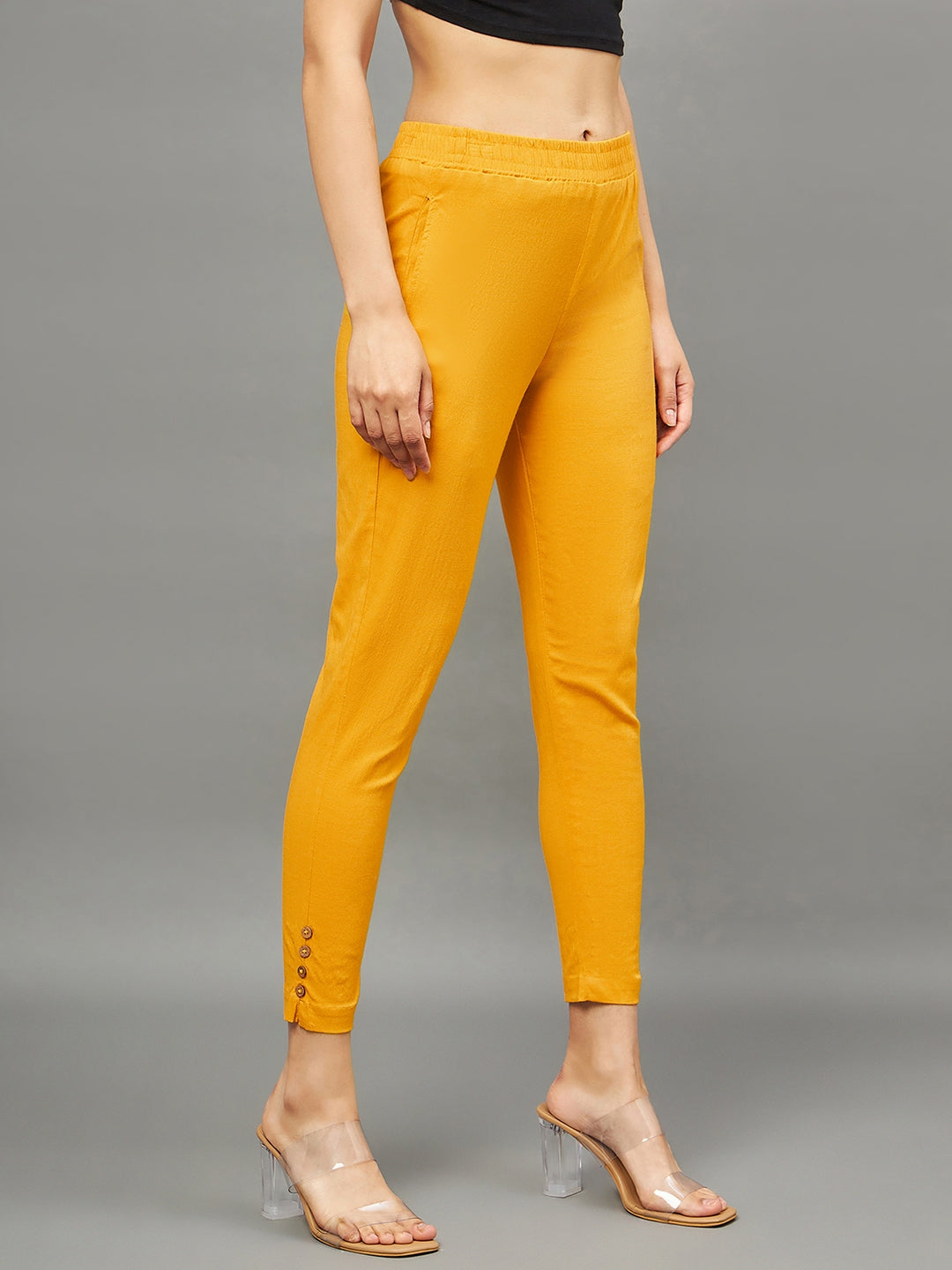 Elevate your style with our Lycra Blend Button Pants, crafted from premium-quality fabric that offers a soft touch and a luxurious feel. These trousers feature a sleek, regular fit design with a mid-rise elasticized waistband for a secure and comfortable closure. Available in vibrant, eye-catching colors, they are perfect for all-day wear.