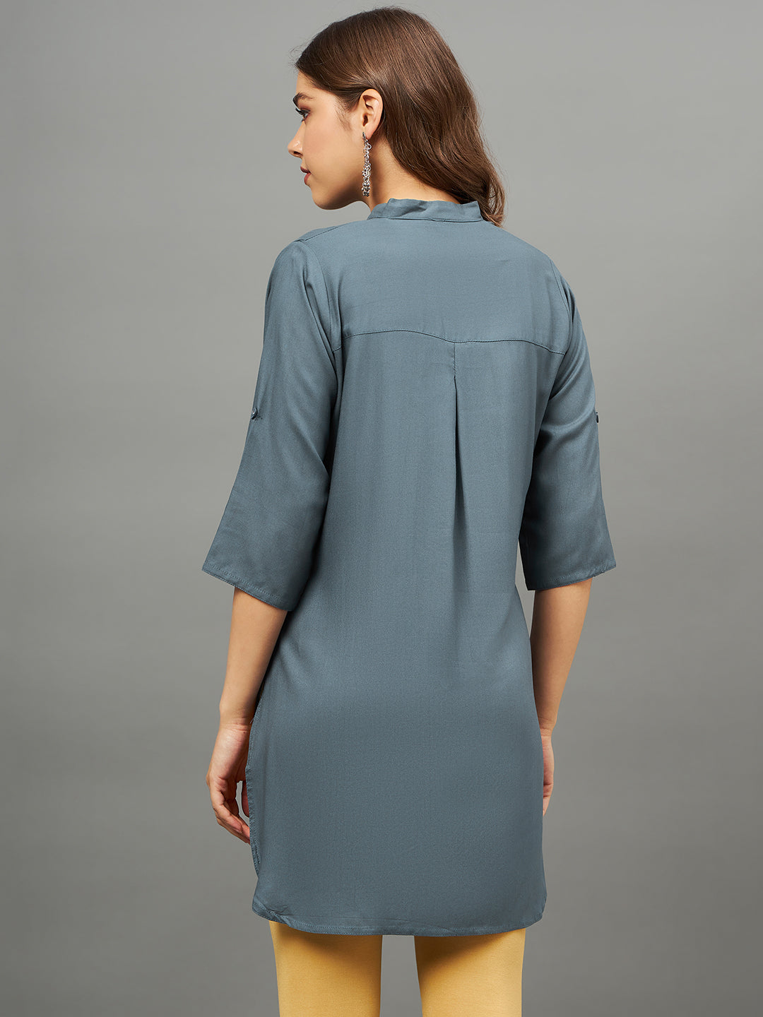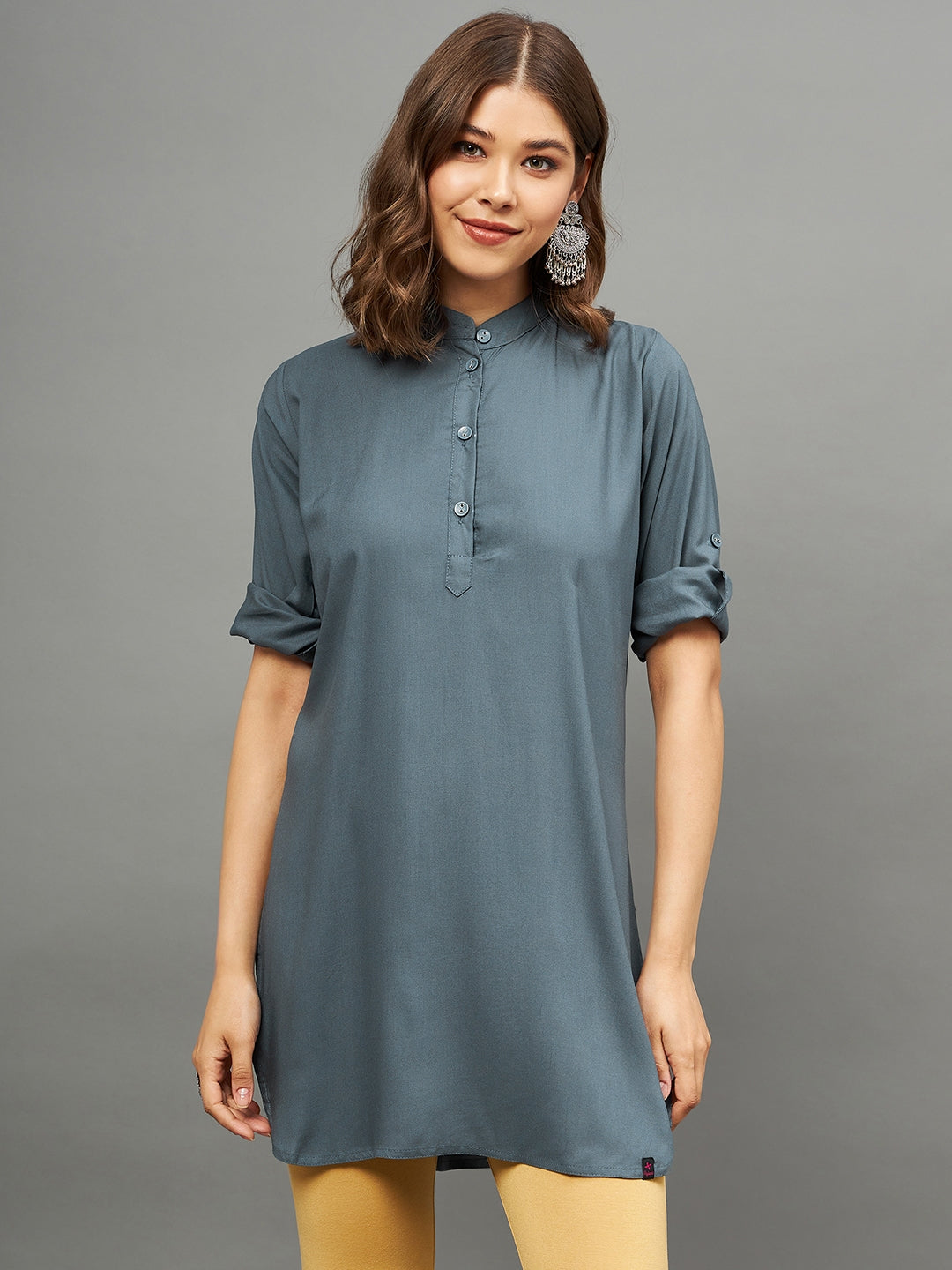 Dark Grey Solid Coloured Short Kurti - 32" Length
