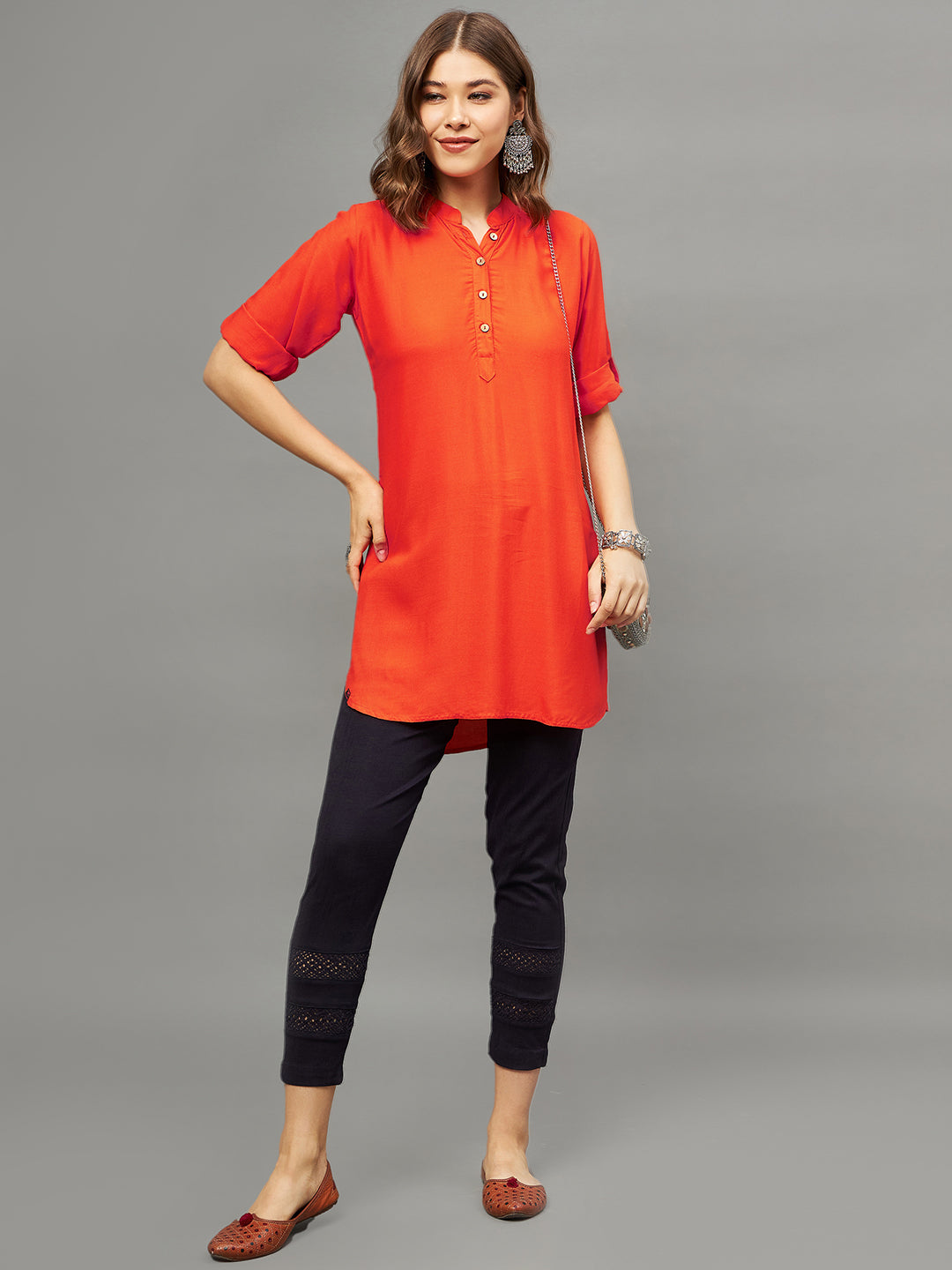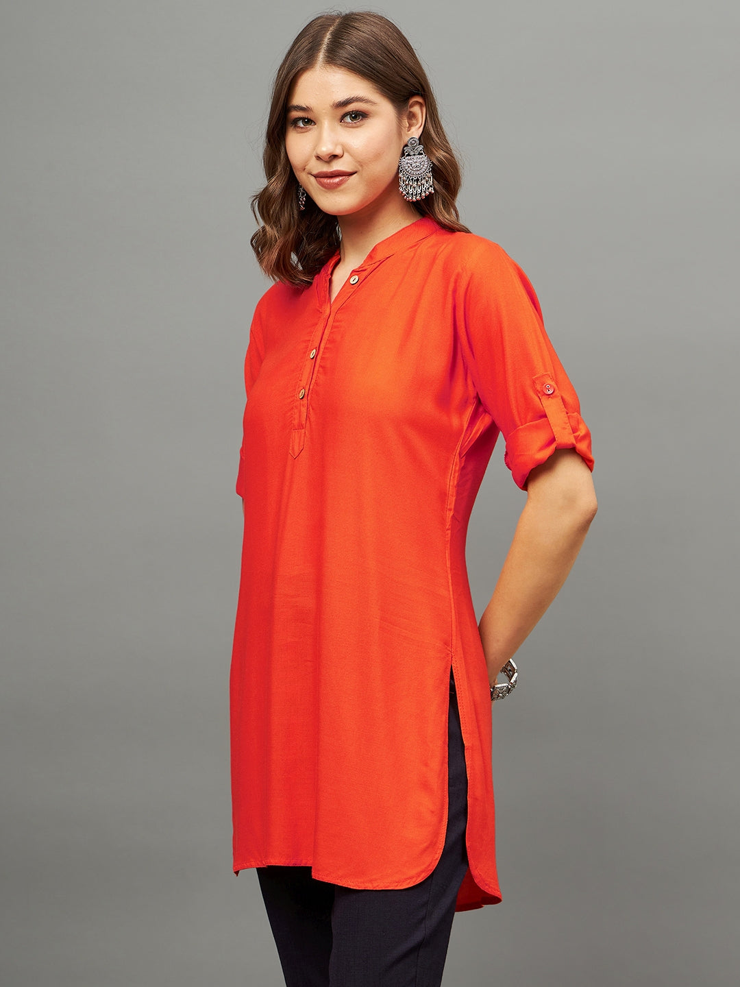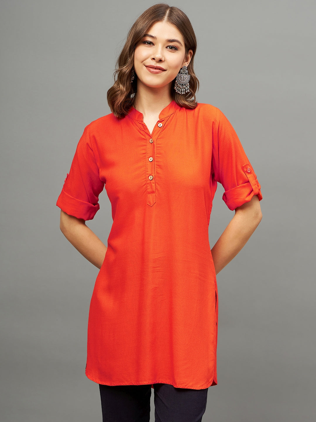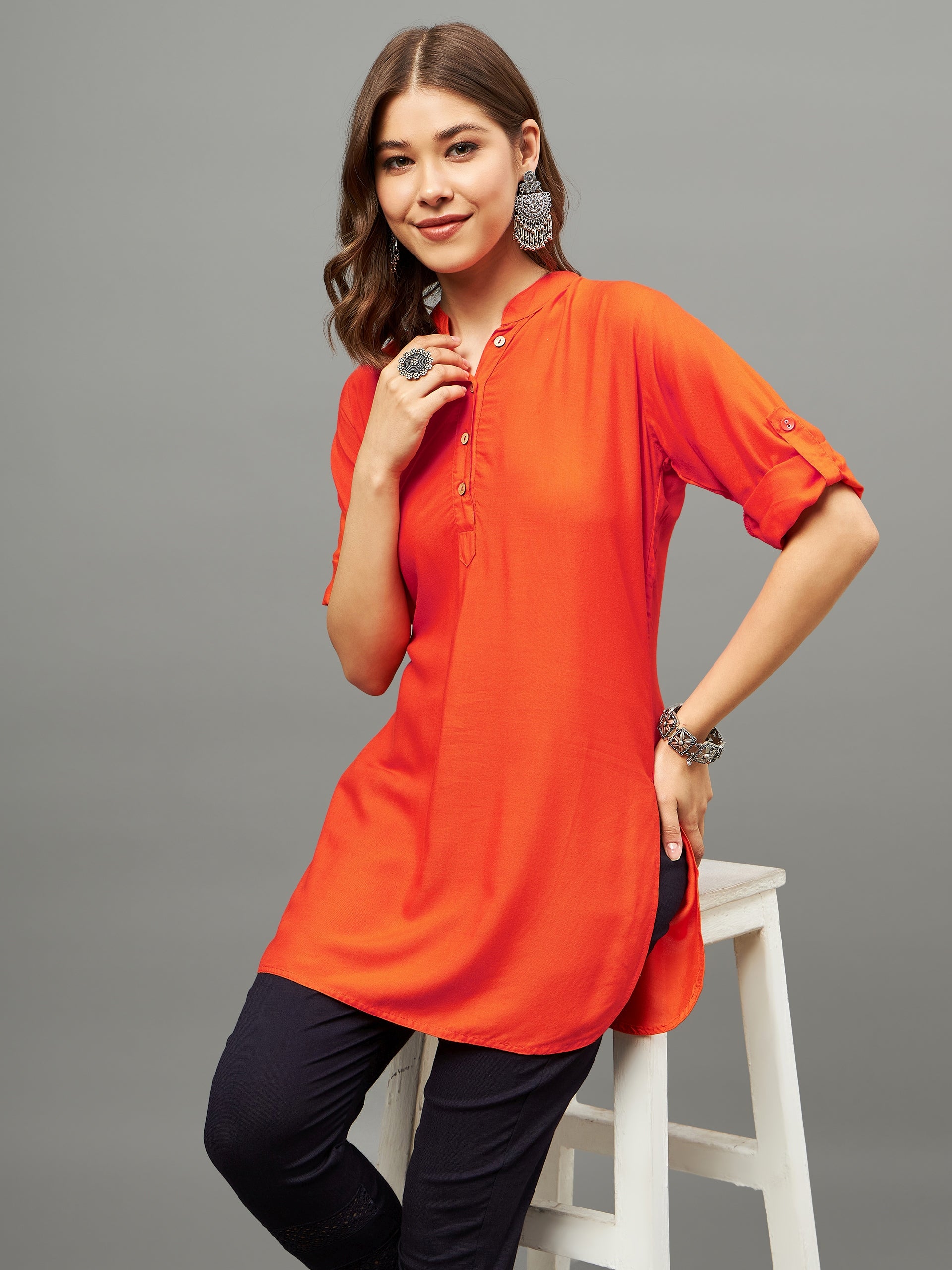 Dark Orange Solid Coloured Short Kurti - 32"Length