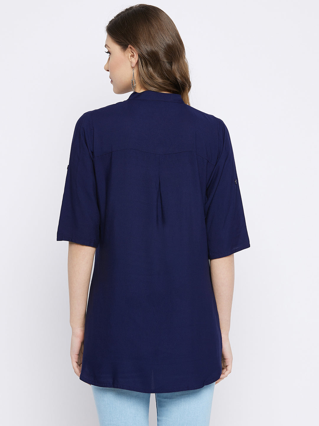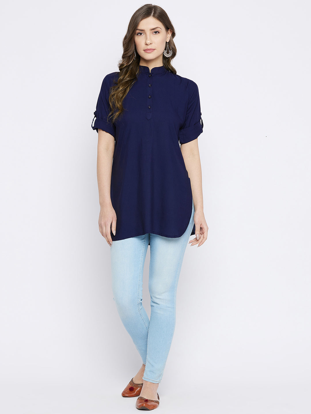 Navy Blue Solid Coloured Short Kurti - 32" Length