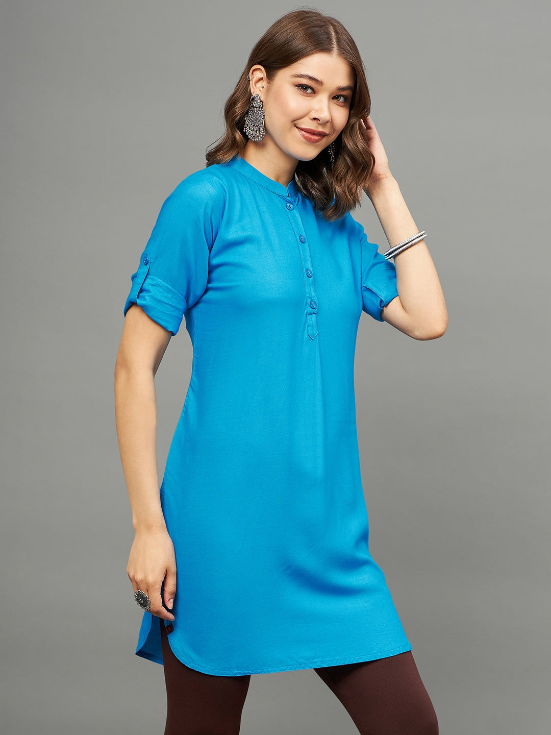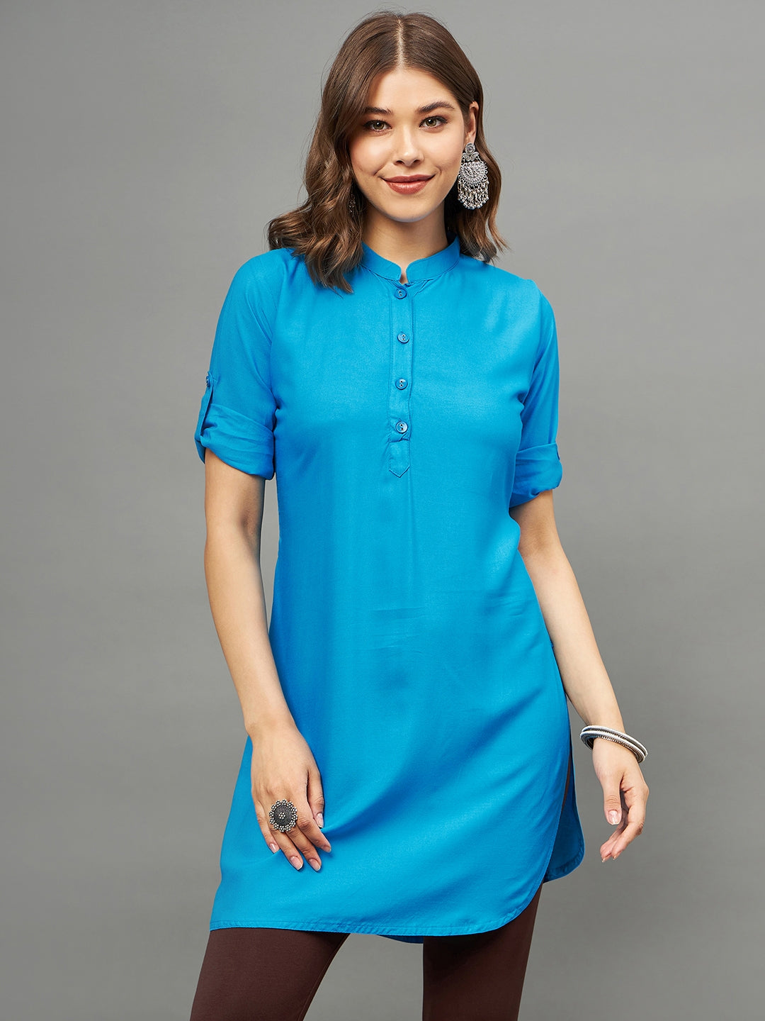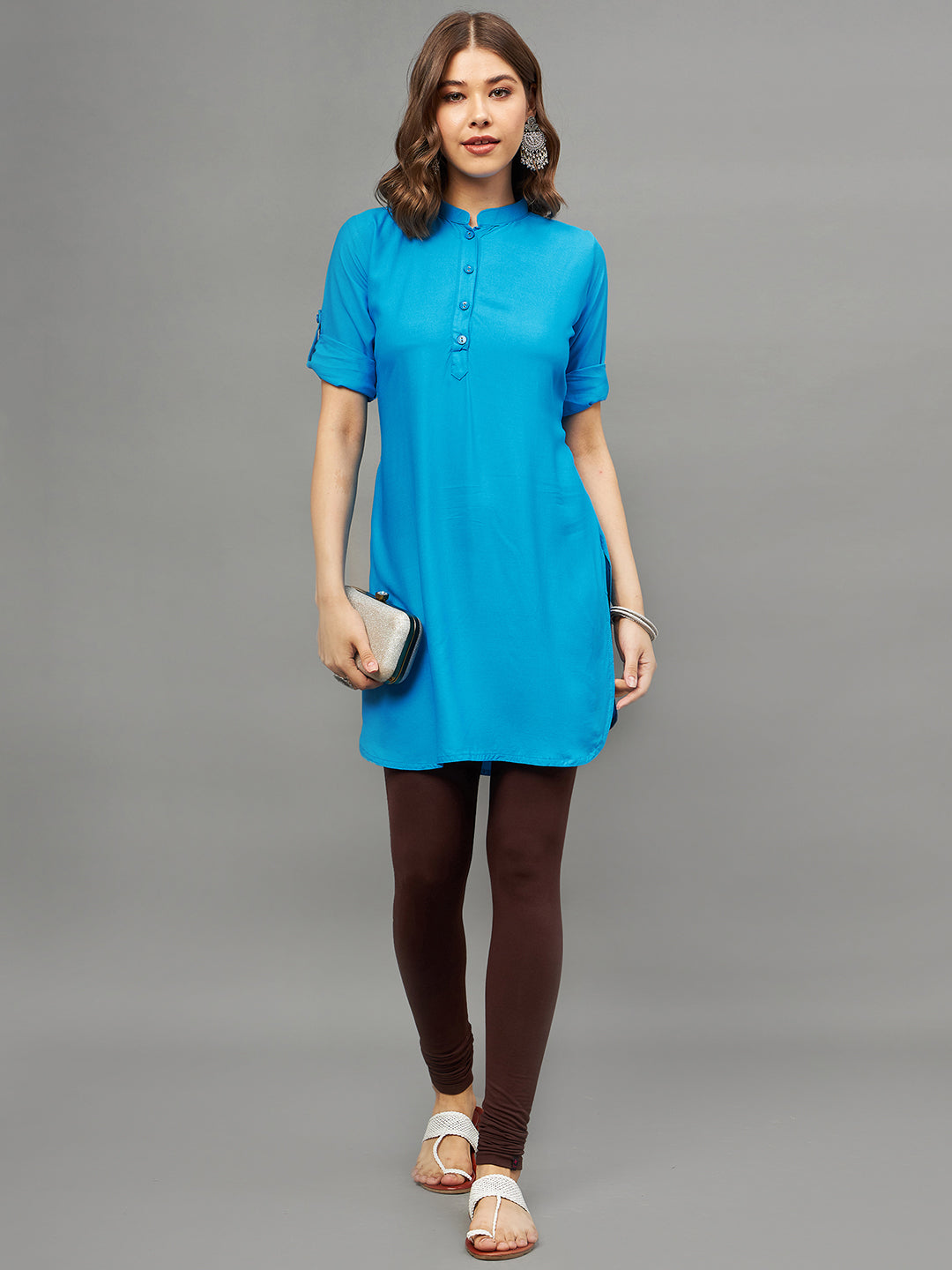Turquoise Blue Solid Coloured Short Kurti - 32" Length