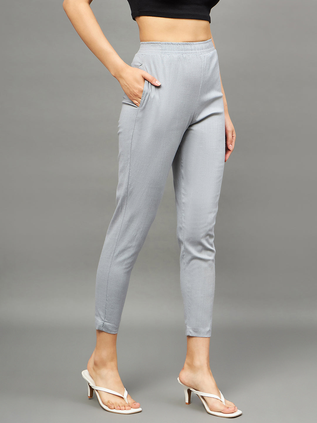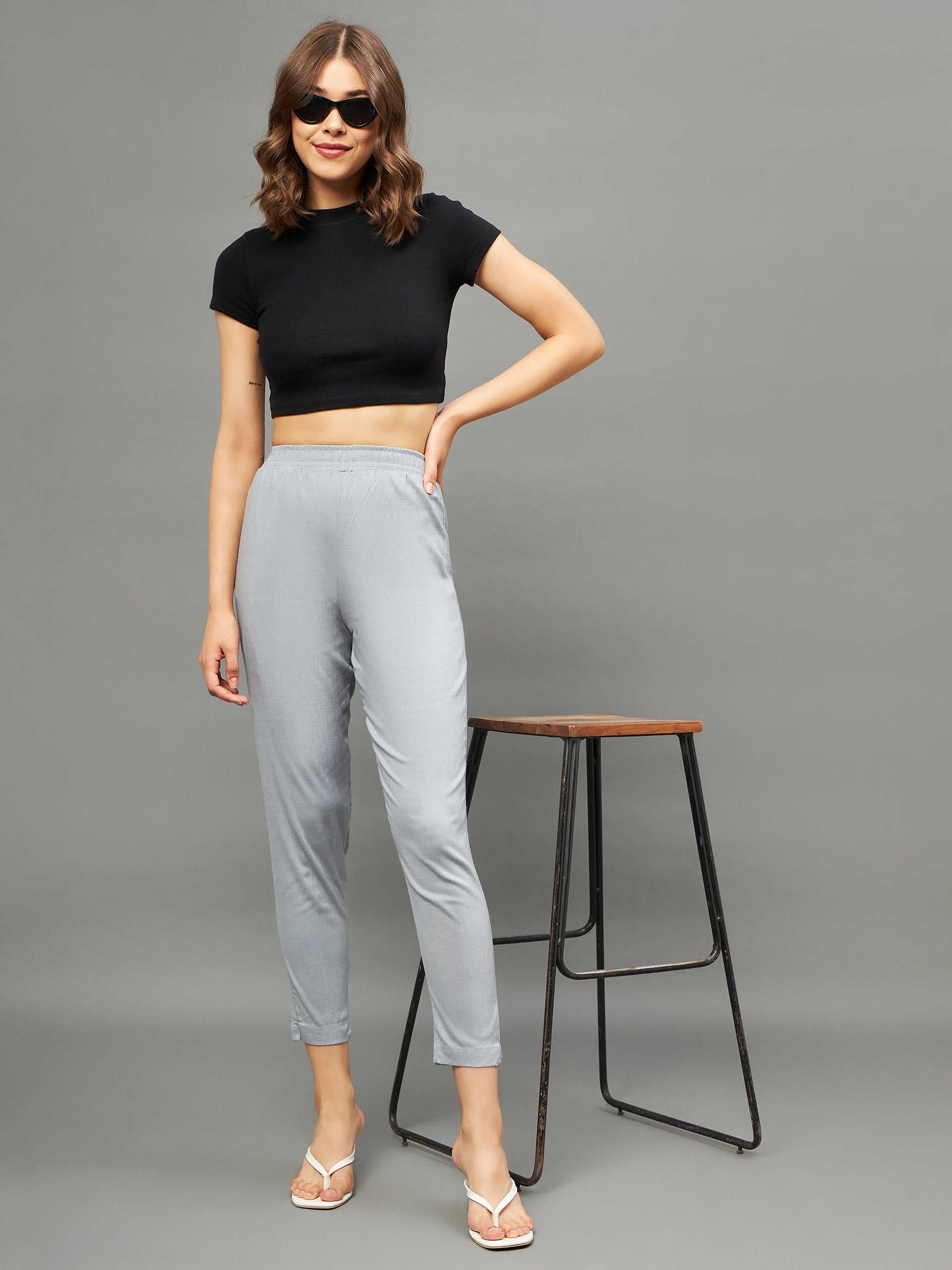 Grey Colour Straight Pant