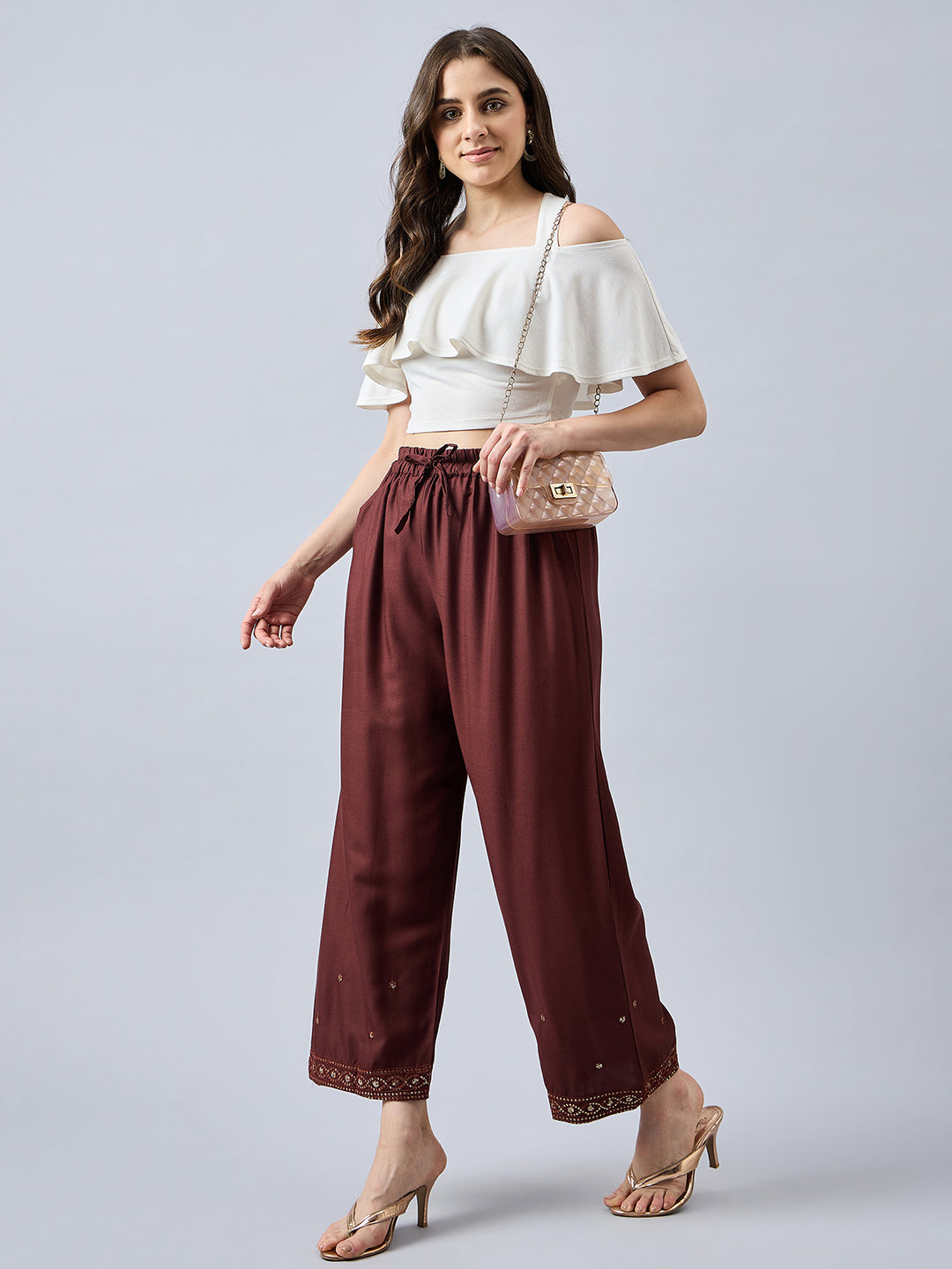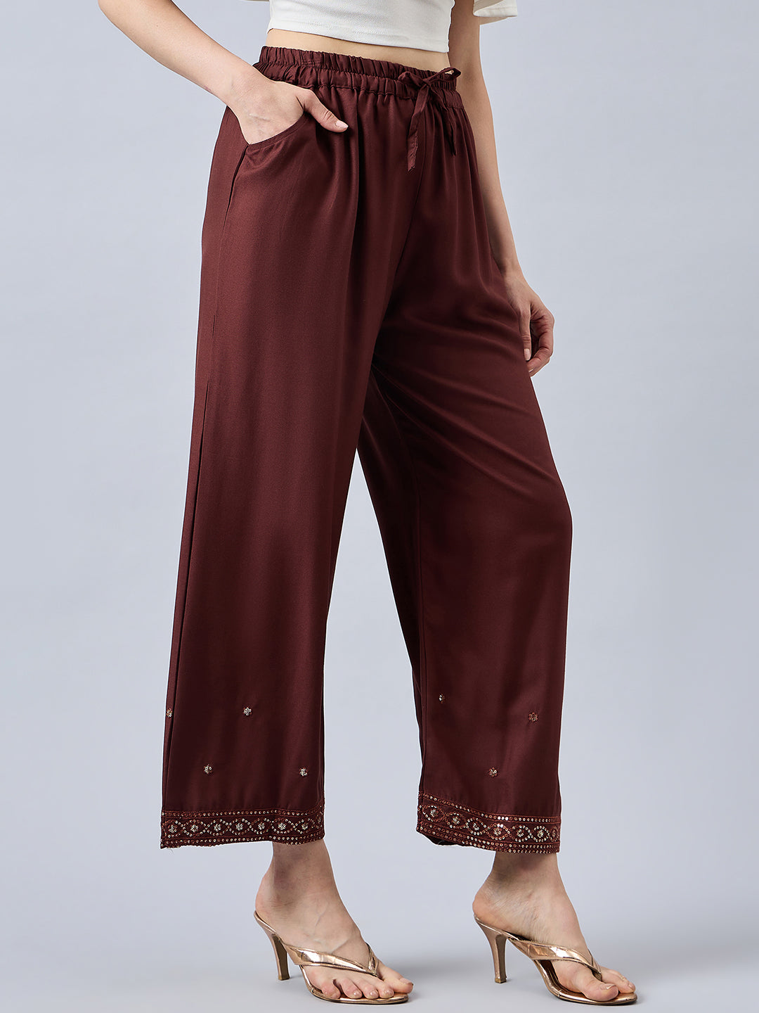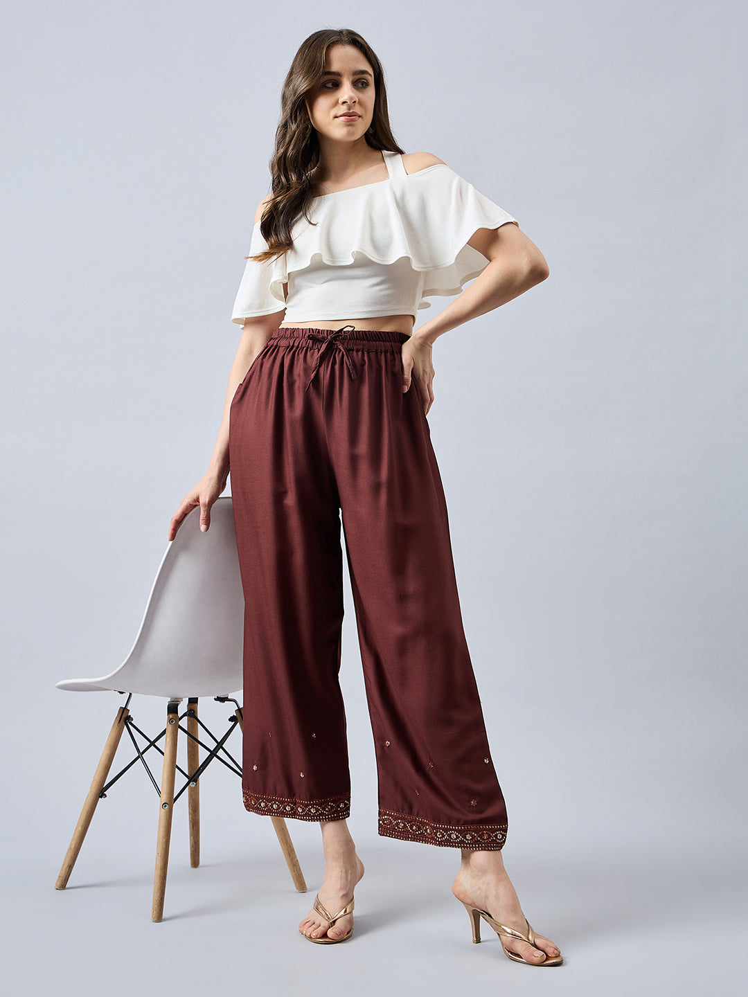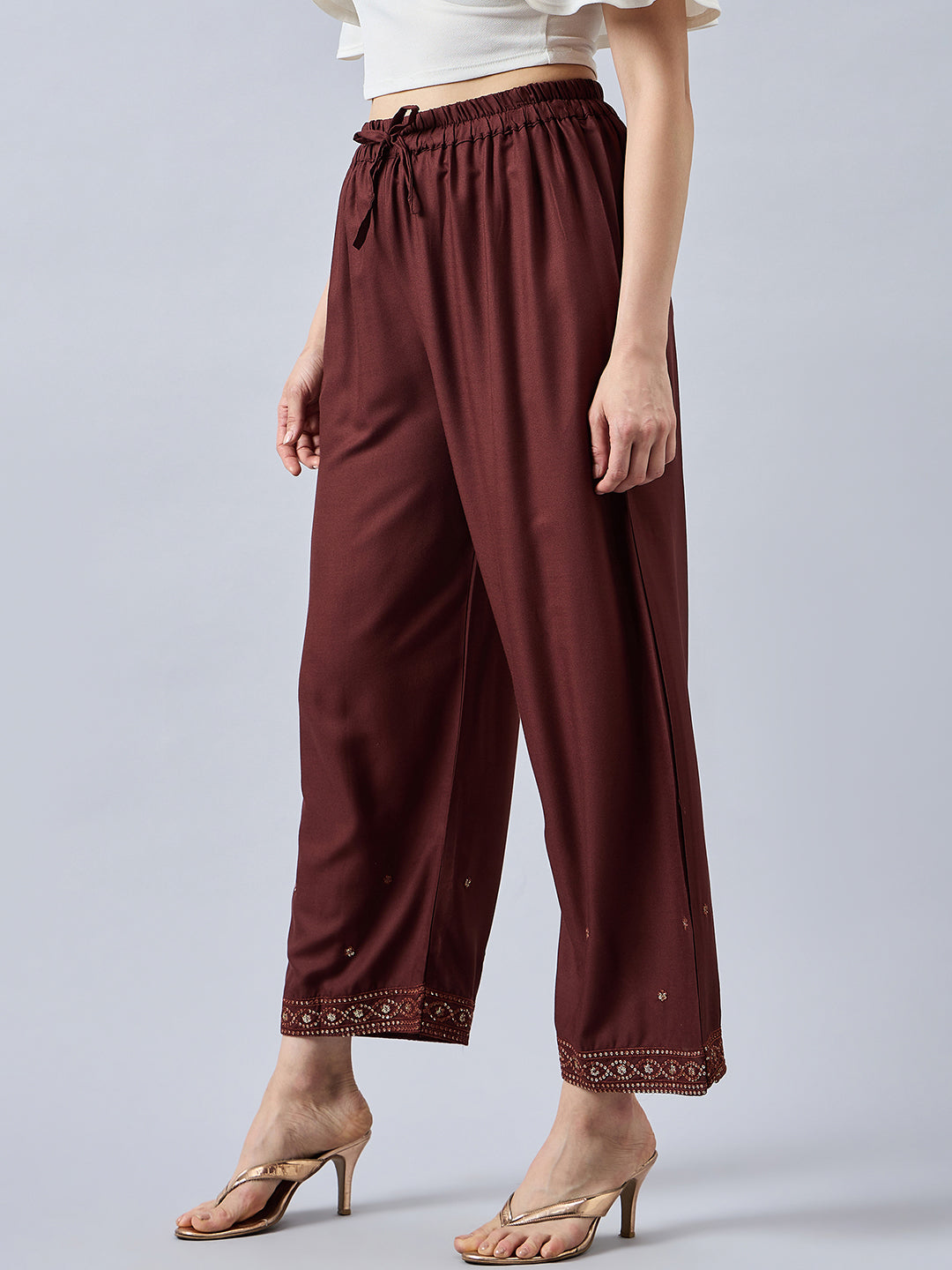 Upgrade your wardrobe with these Elegant Embellished Palazzos, crafted from soft and breathable viscose rayon. Designed for both comfort and sophistication, these palazzos feature exquisite embellishments that add a touch of glamour, perfect for semi-formal and festive occasions.