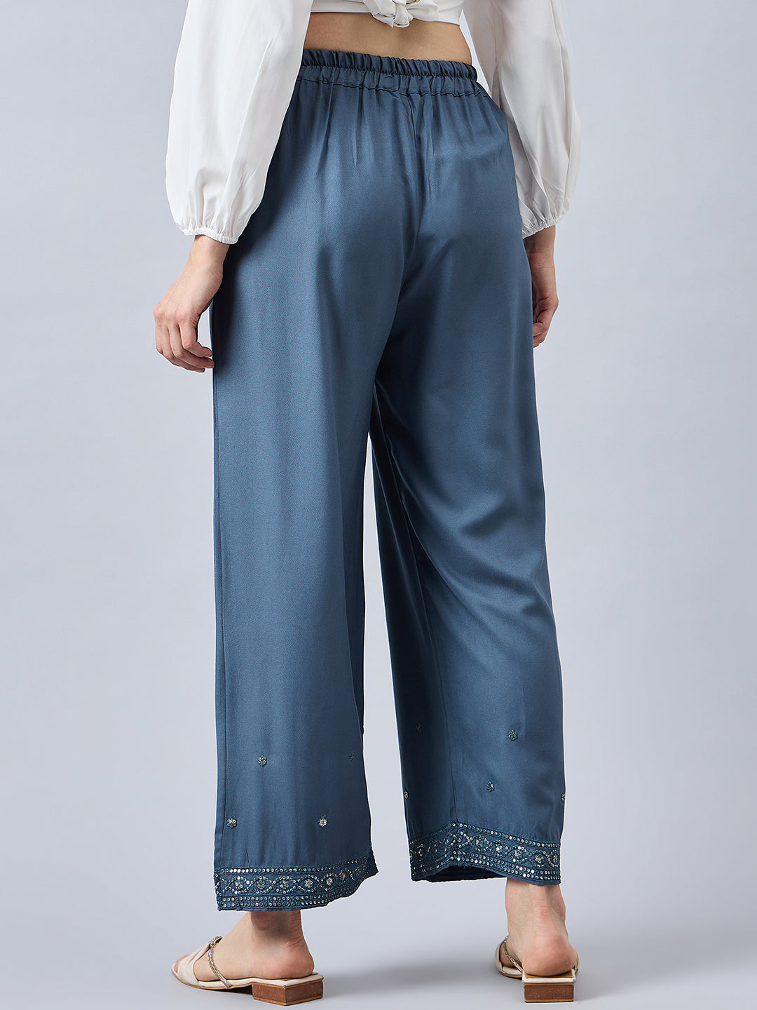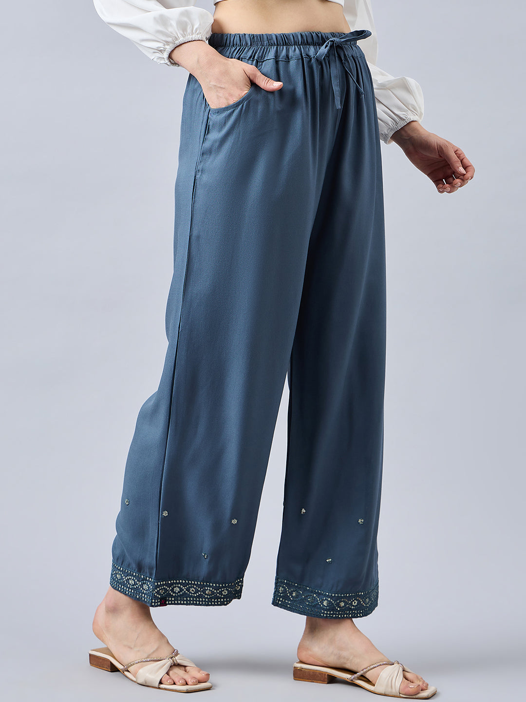 Upgrade your wardrobe with these Elegant Embellished Palazzos, crafted from soft and breathable viscose rayon. Designed for both comfort and sophistication, these palazzos feature exquisite embellishments that add a touch of glamour, perfect for semi-formal and festive occasions.