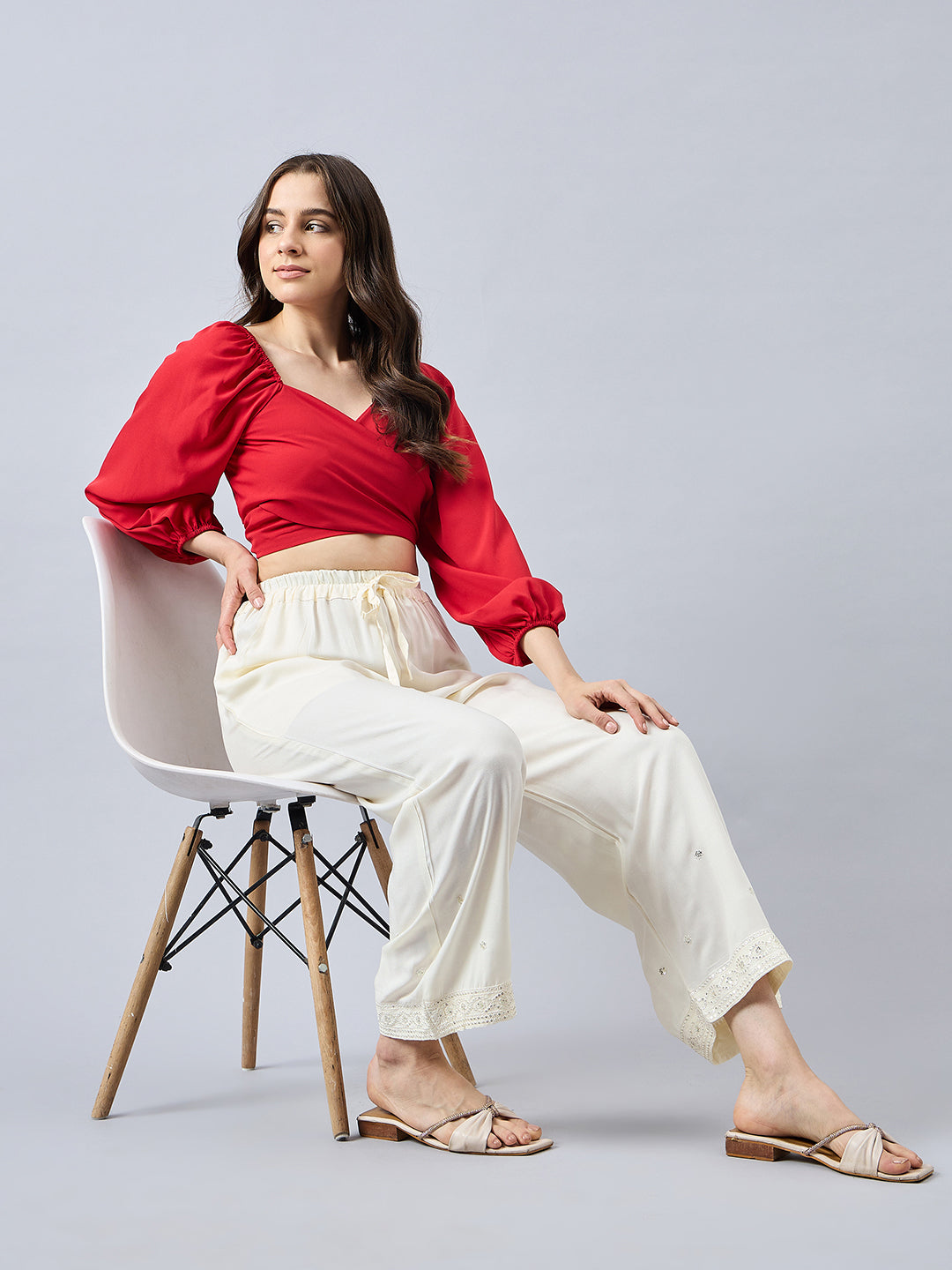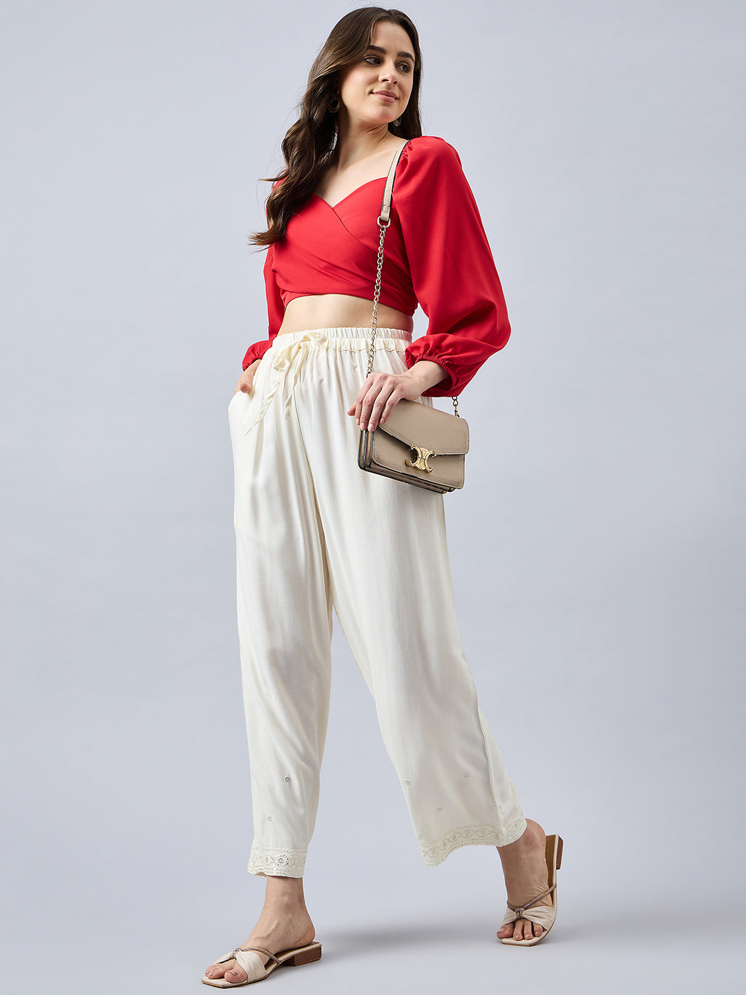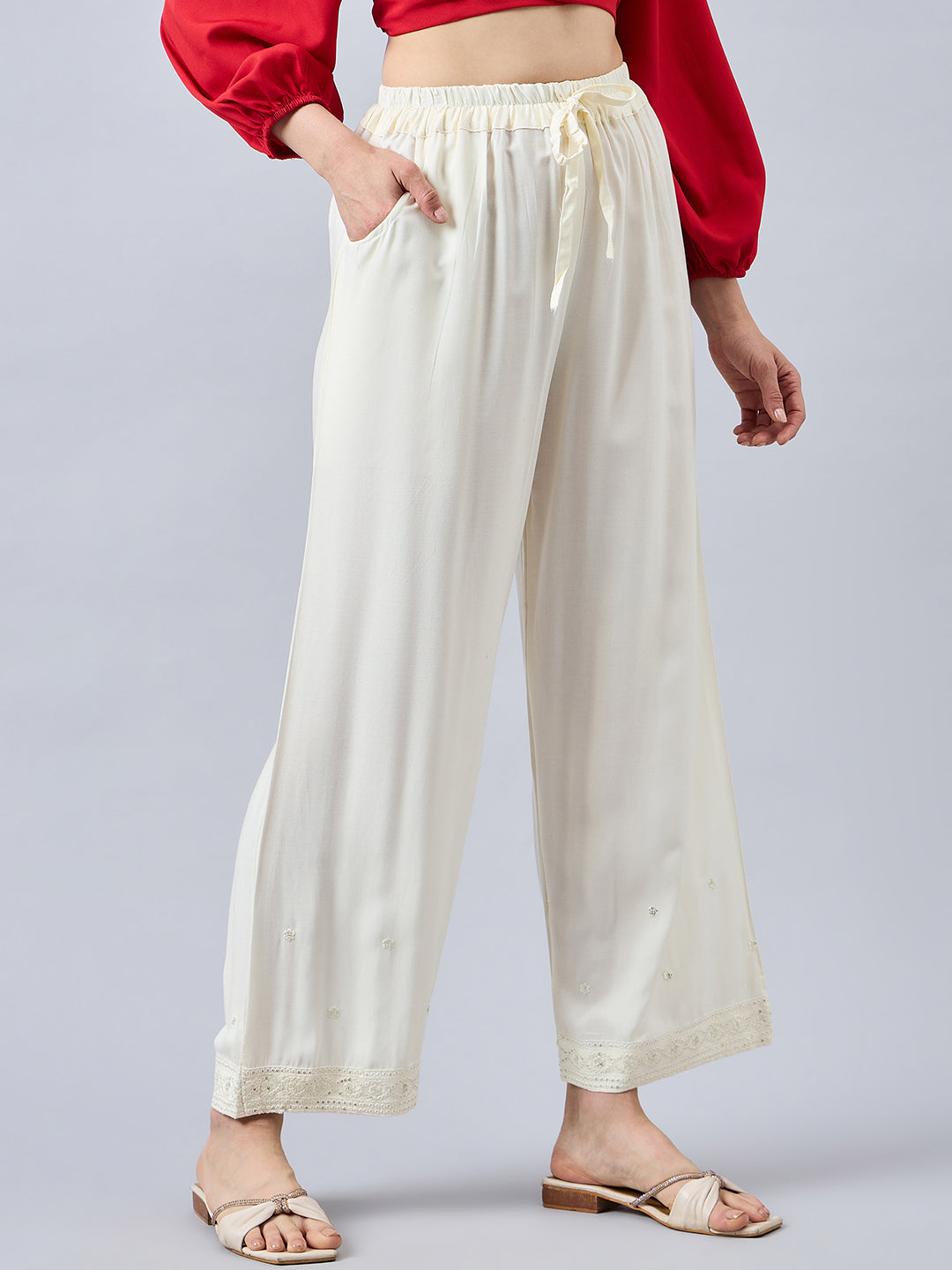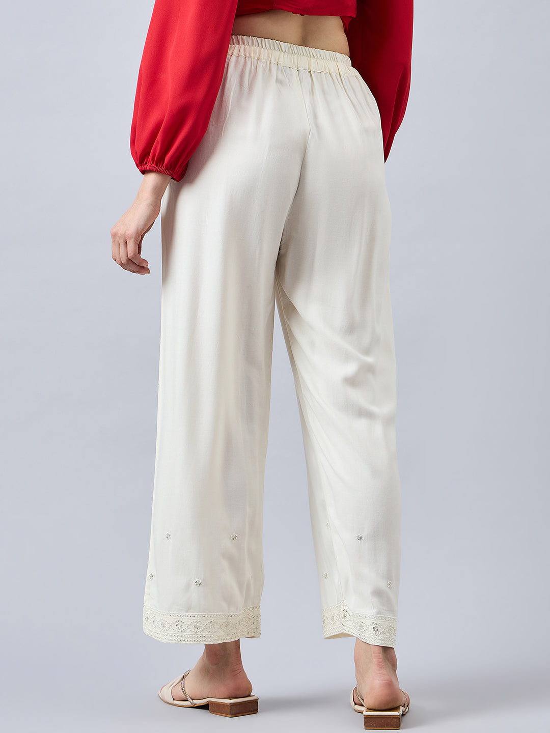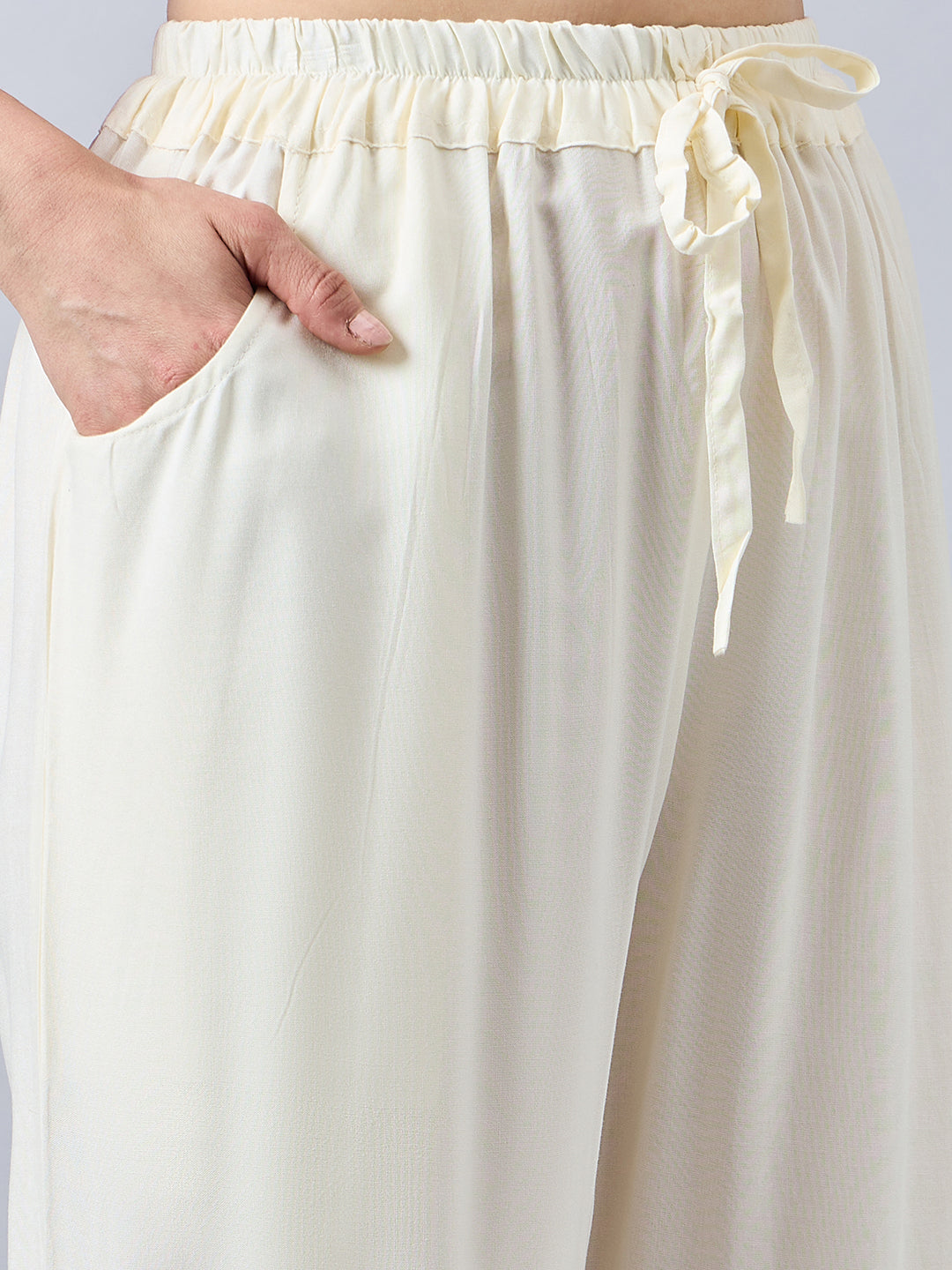 Upgrade your wardrobe with these Elegant Embellished Palazzos, crafted from soft and breathable viscose rayon. Designed for both comfort and sophistication, these palazzos feature exquisite embellishments that add a touch of glamour, perfect for semi-formal and festive occasions.
