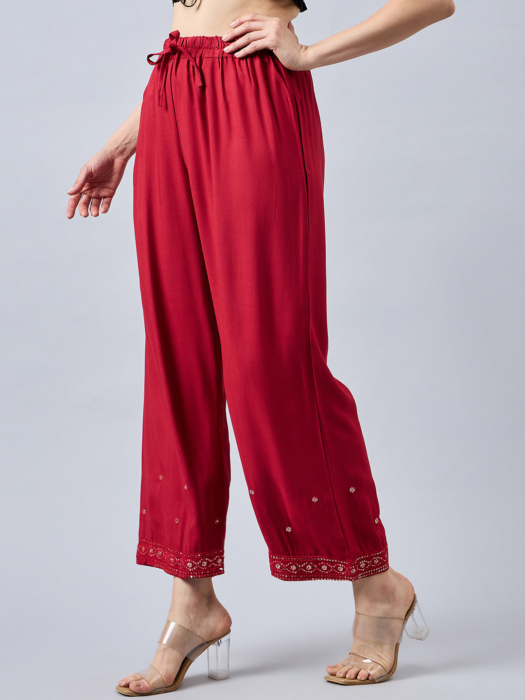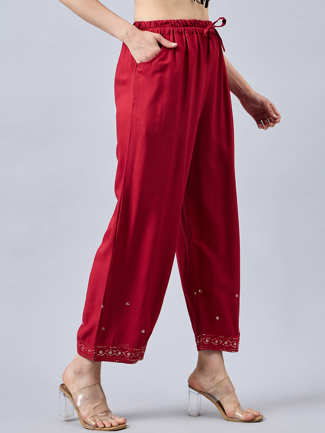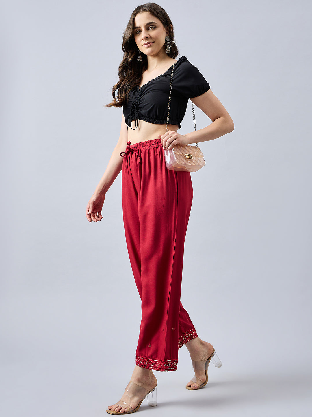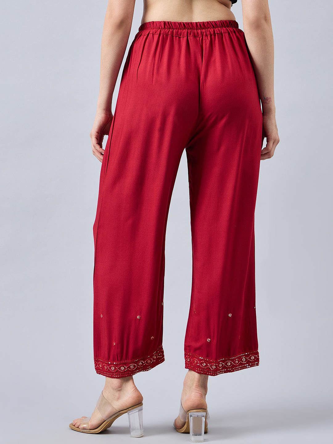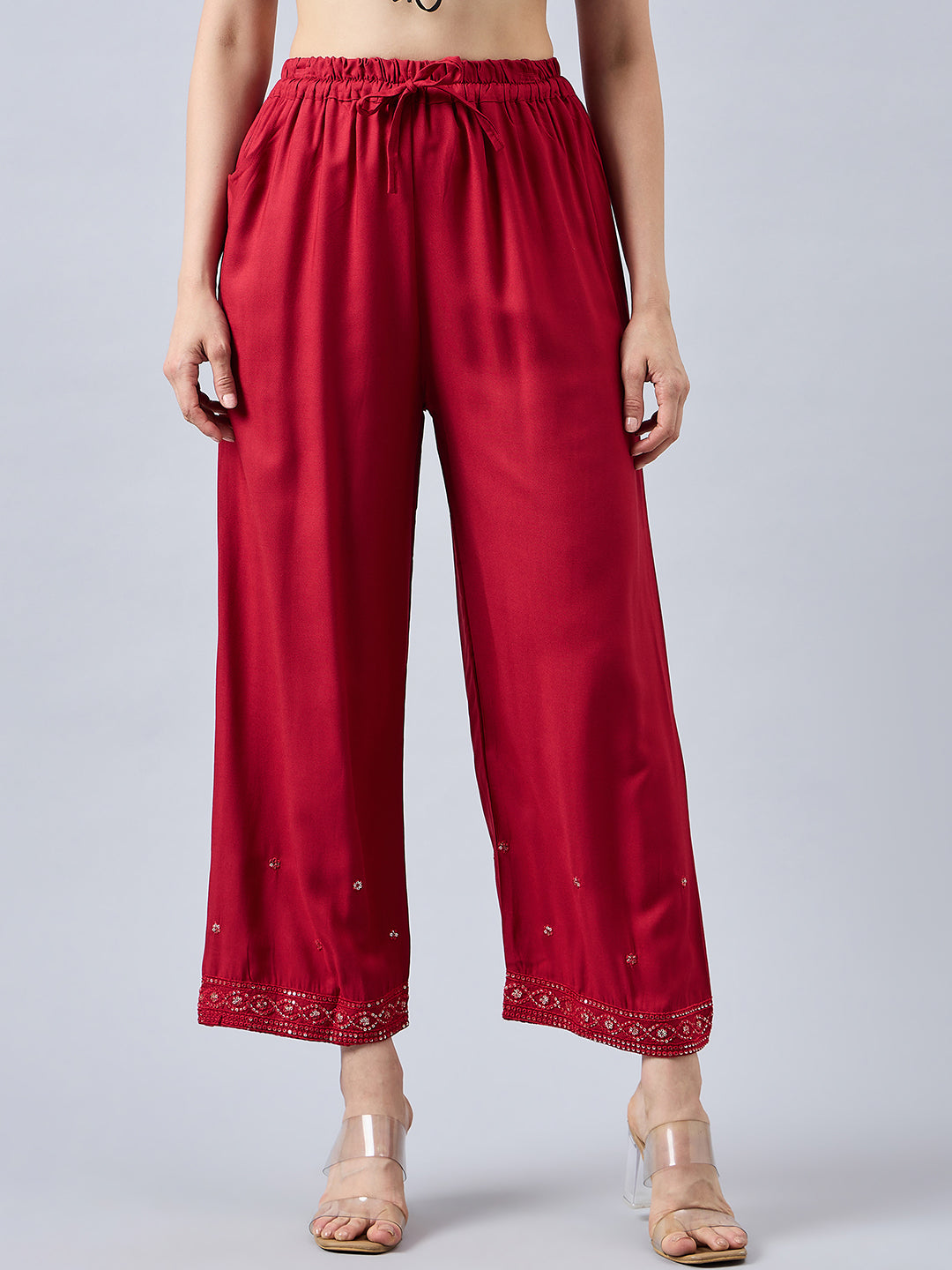 Upgrade your wardrobe with these Elegant Embellished Palazzos, crafted from soft and breathable viscose rayon. Designed for both comfort and sophistication, these palazzos feature exquisite embellishments that add a touch of glamour, perfect for semi-formal and festive occasions.