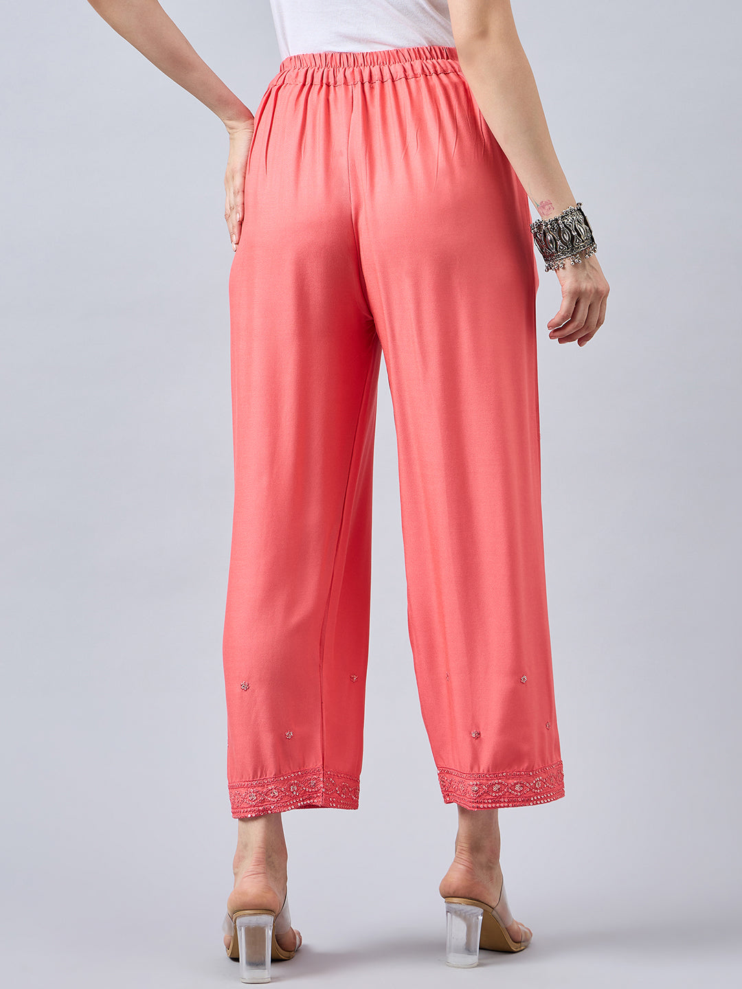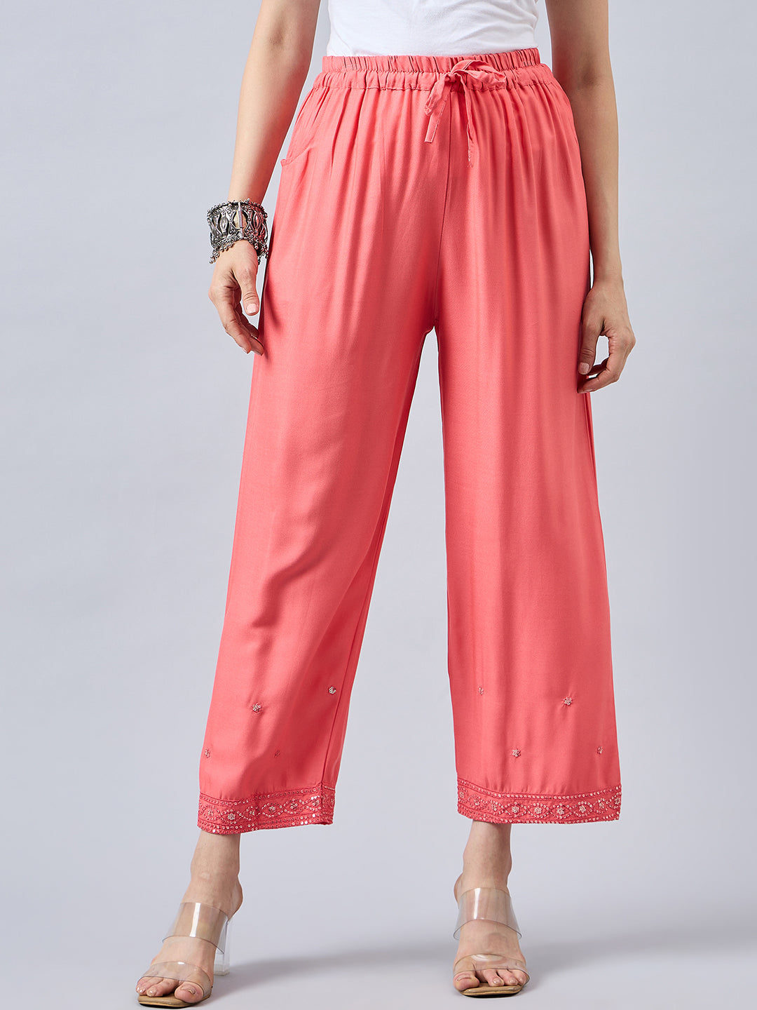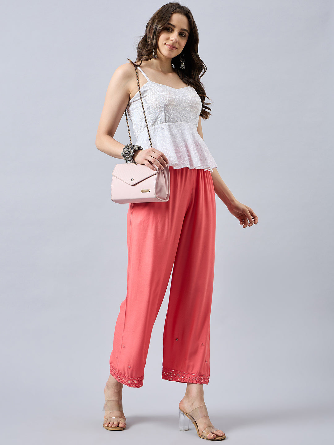 Upgrade your wardrobe with these Elegant Embellished Palazzos, crafted from soft and breathable viscose rayon. Designed for both comfort and sophistication, these palazzos feature exquisite embellishments that add a touch of glamour, perfect for semi-formal and festive occasions.