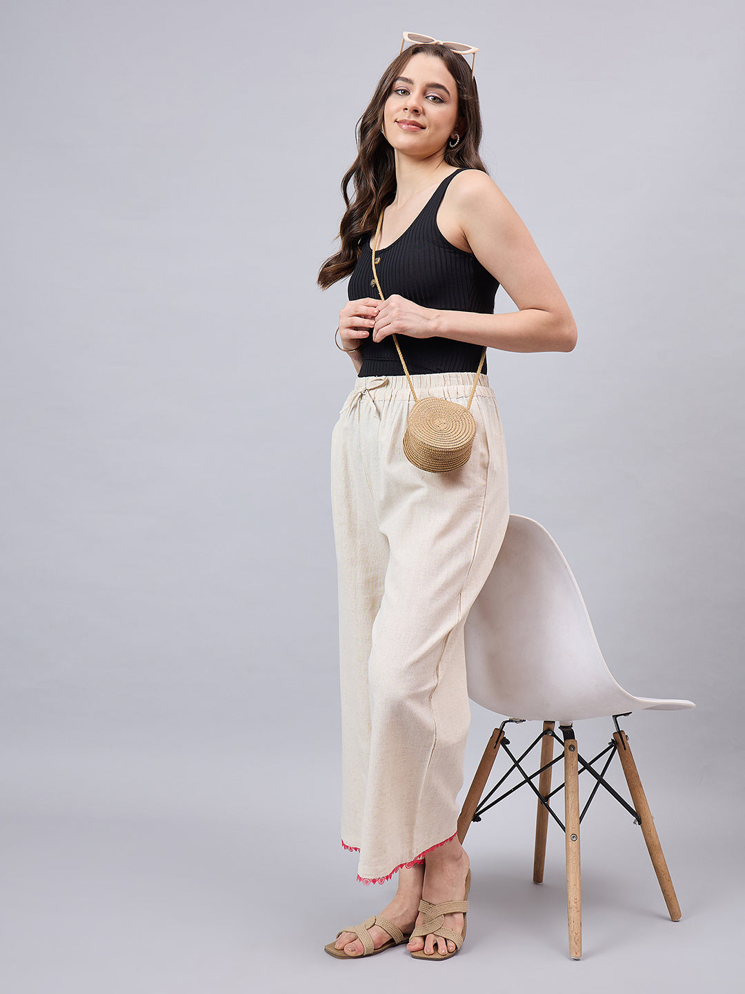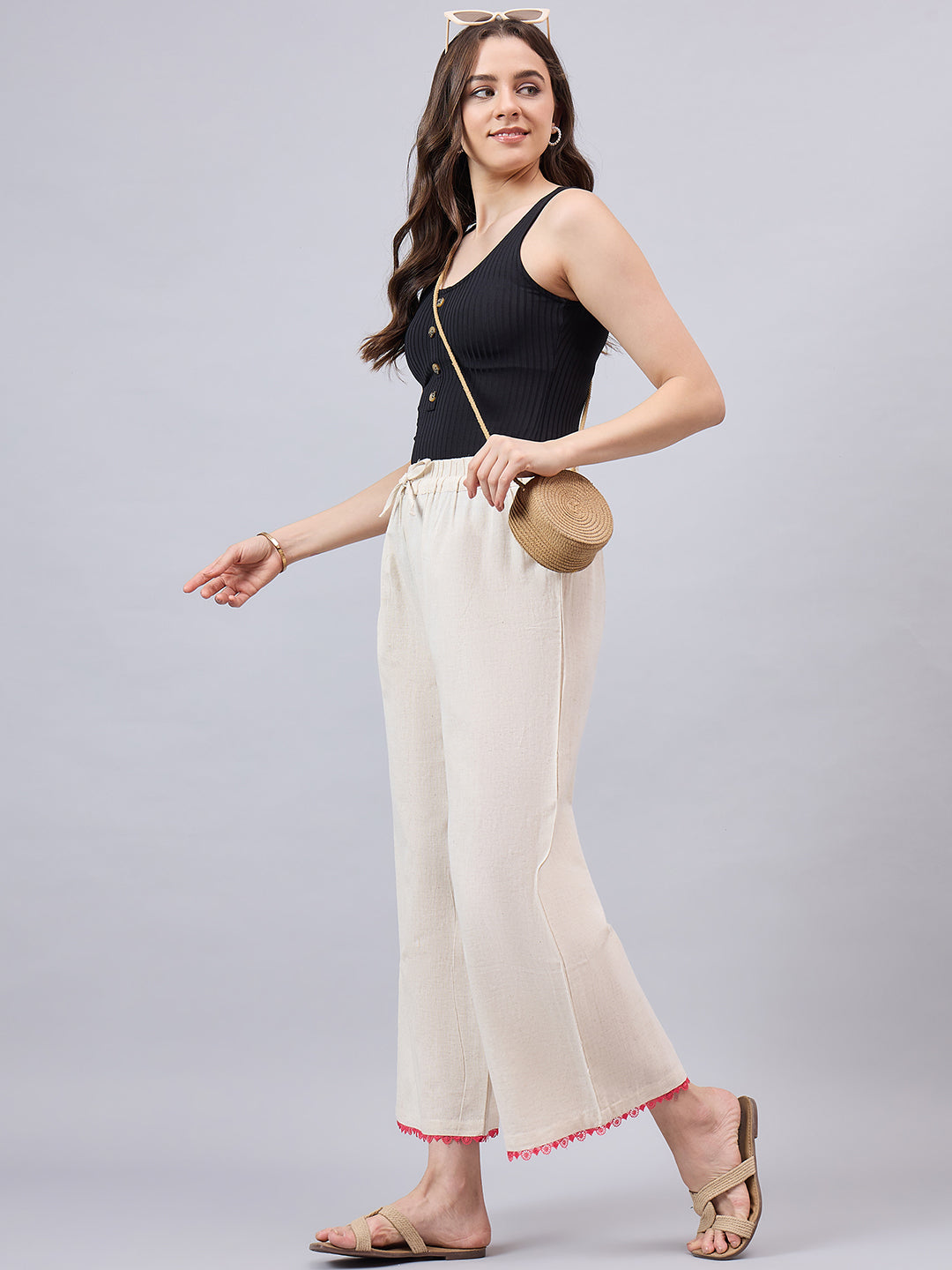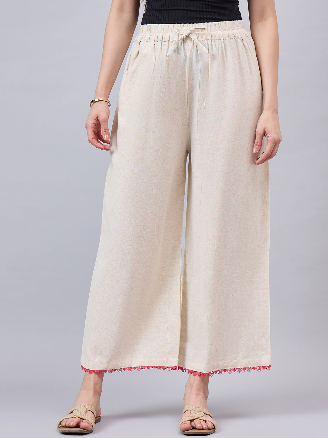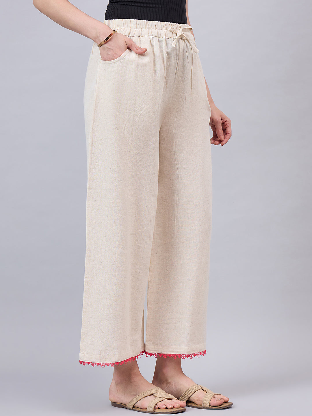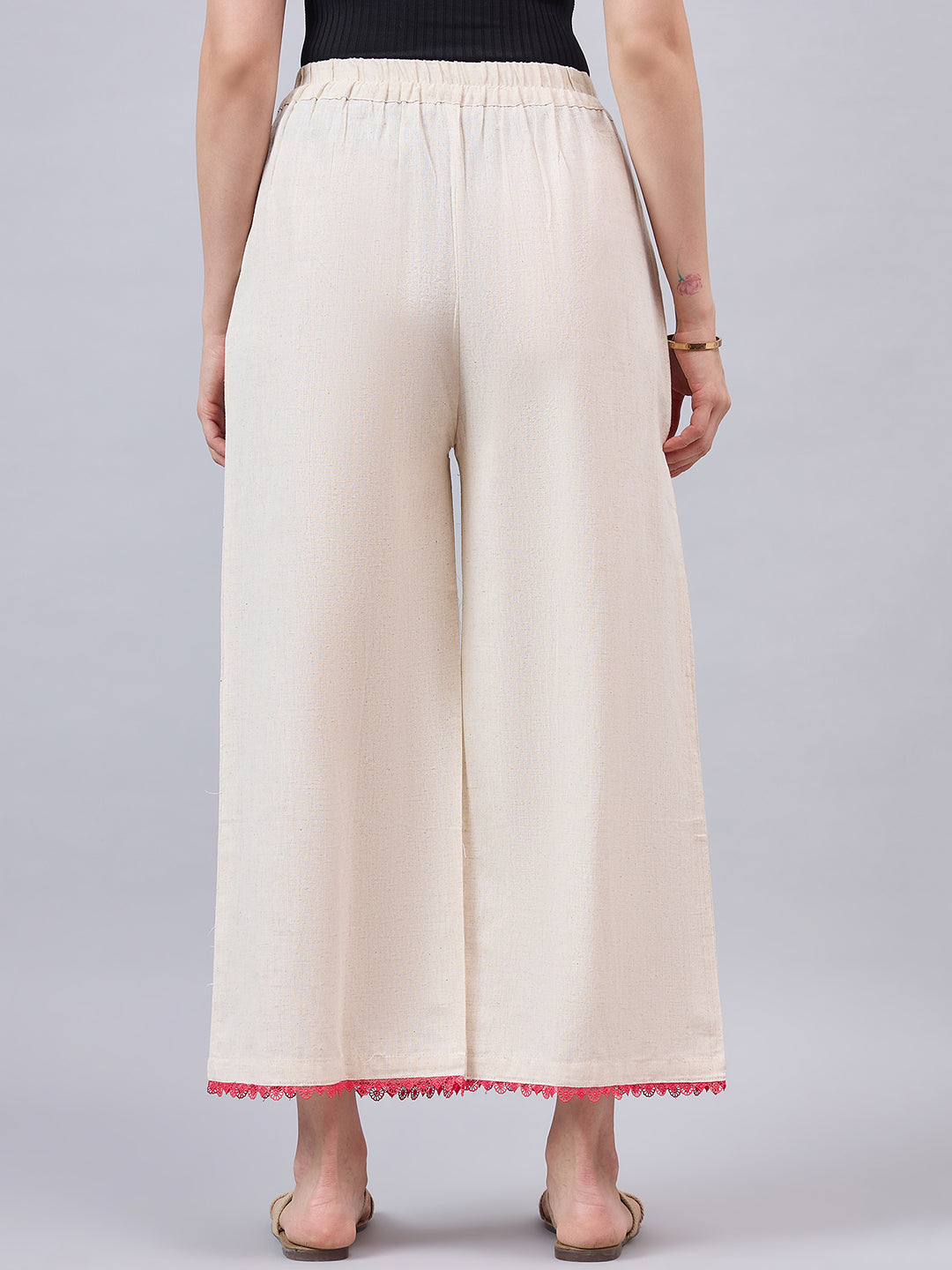 Cotton Palazzo With Pink Lace Detailing