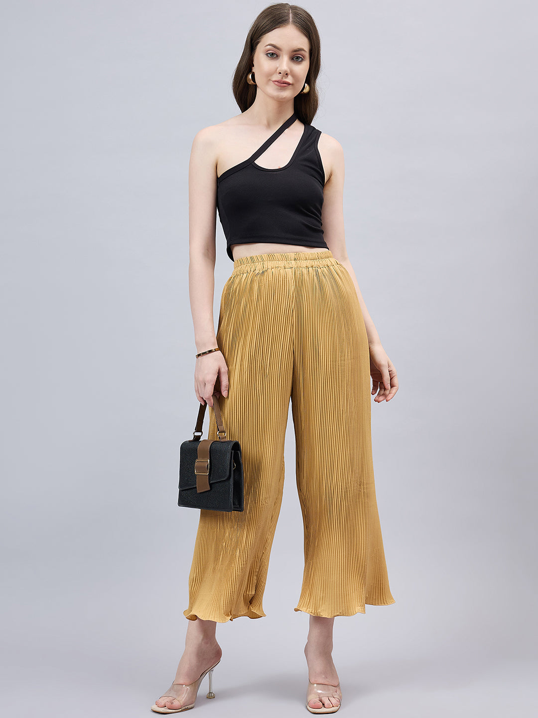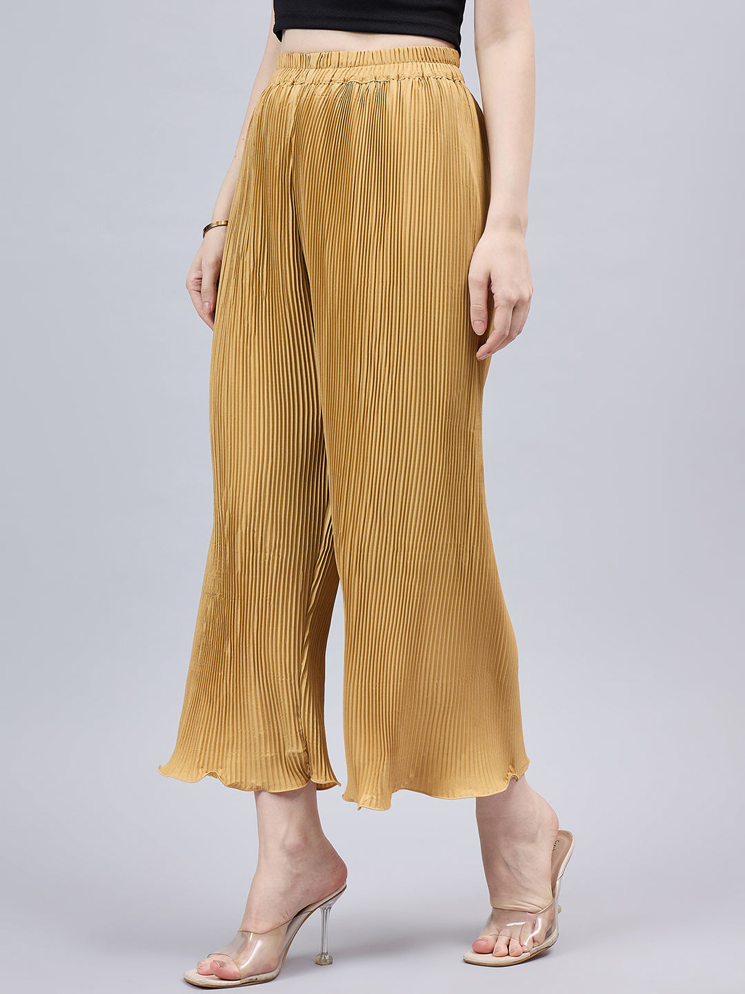 Add a touch of effortless elegance to your wardrobe with these Woven Palazzos, designed for comfort, style, and versatility. Made from high-quality woven chiffon fabric, these palazzos feature a solid ribbed pattern that adds a modern twist to a classic design. With their opaque finish and flared fit, they provide a flattering silhouette, while the elasticated waistband ensures a comfortable, secure fit.