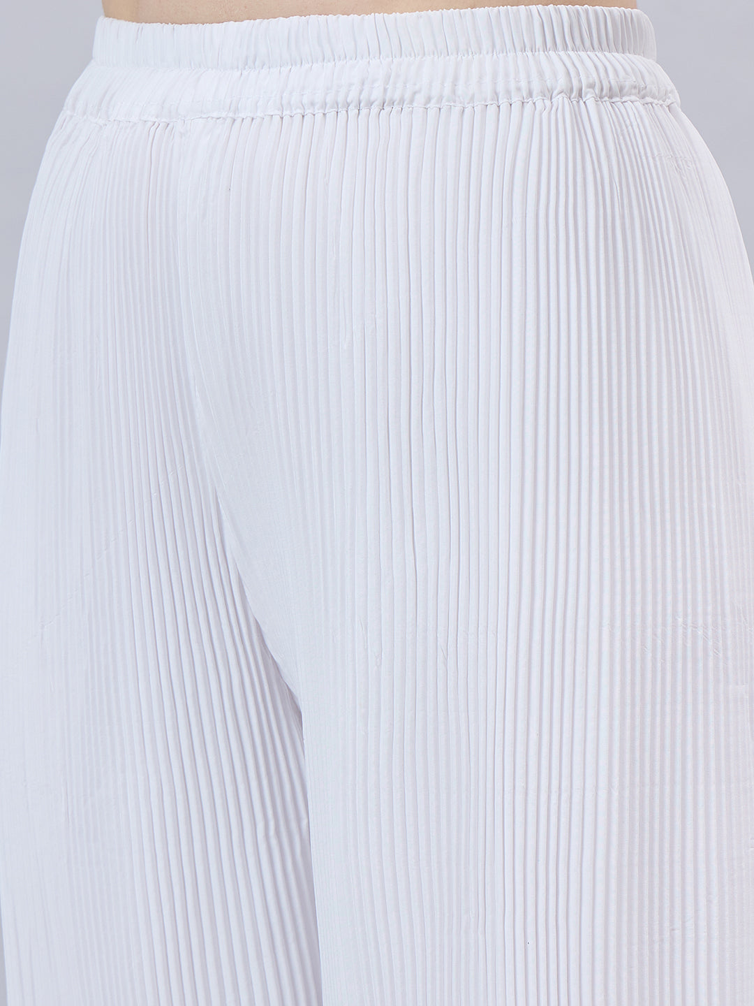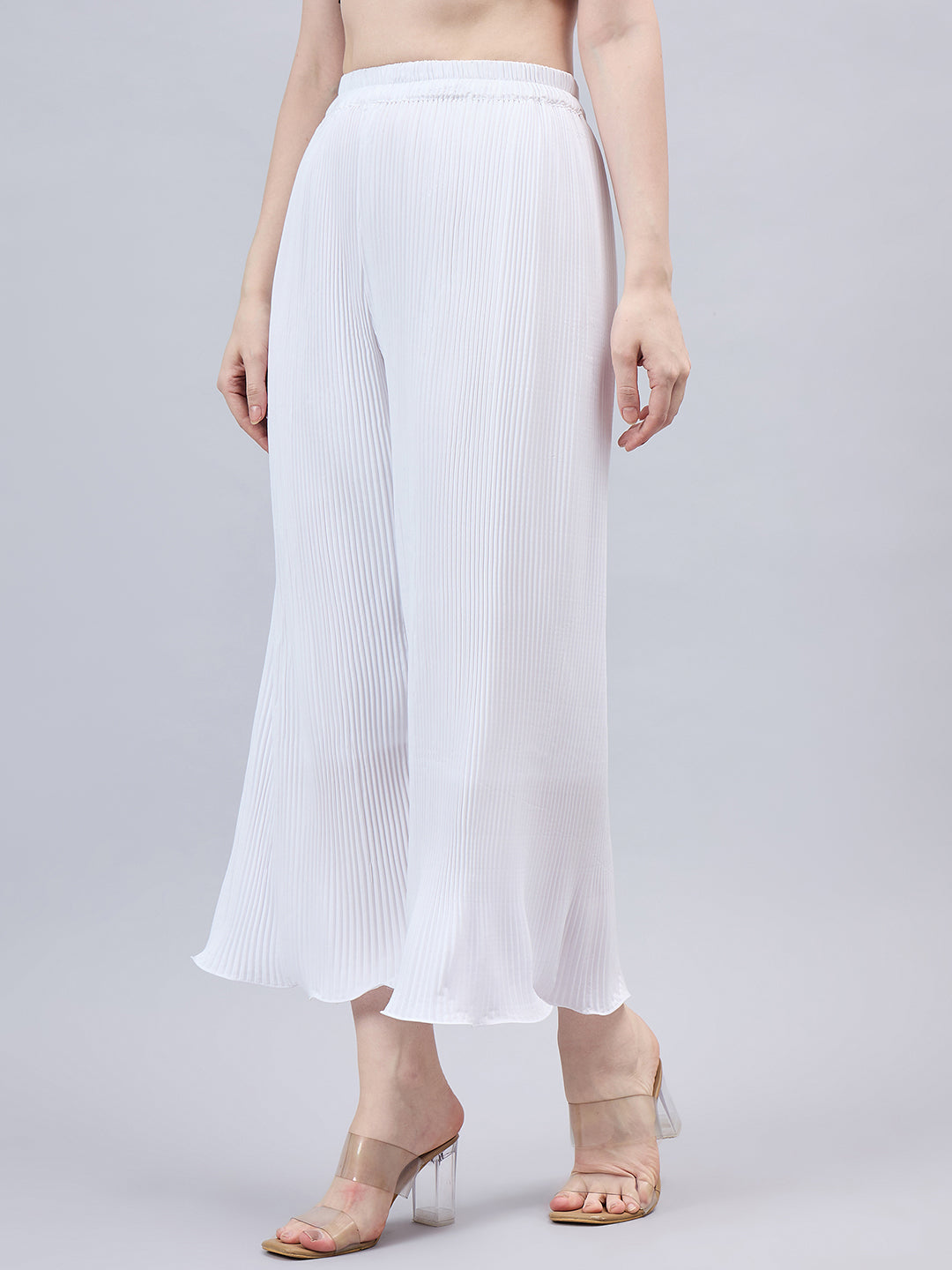 Add a touch of effortless elegance to your wardrobe with these Woven Palazzos, designed for comfort, style, and versatility. Made from high-quality woven chiffon fabric, these palazzos feature a solid ribbed pattern that adds a modern twist to a classic design. With their opaque finish and flared fit, they provide a flattering silhouette, while the elasticated waistband ensures a comfortable, secure fit.