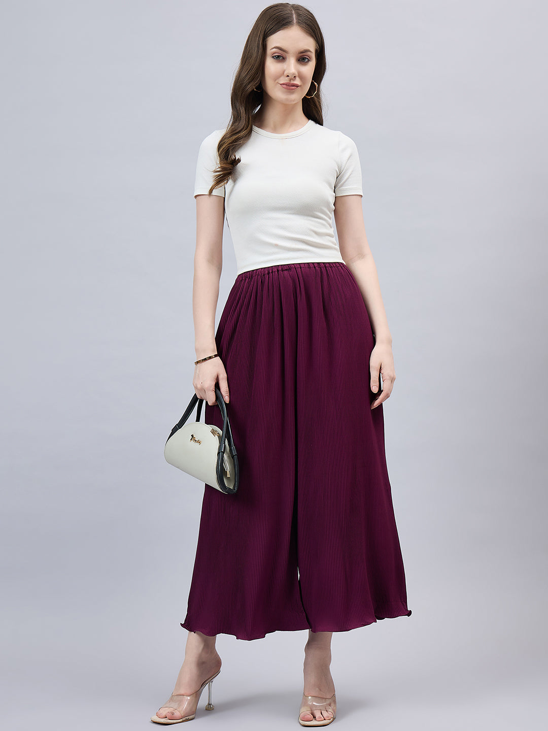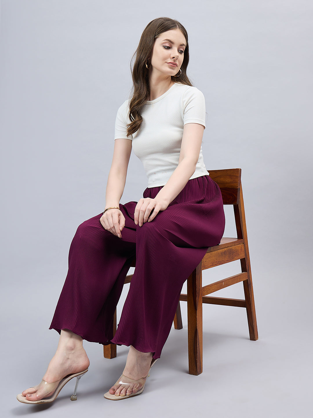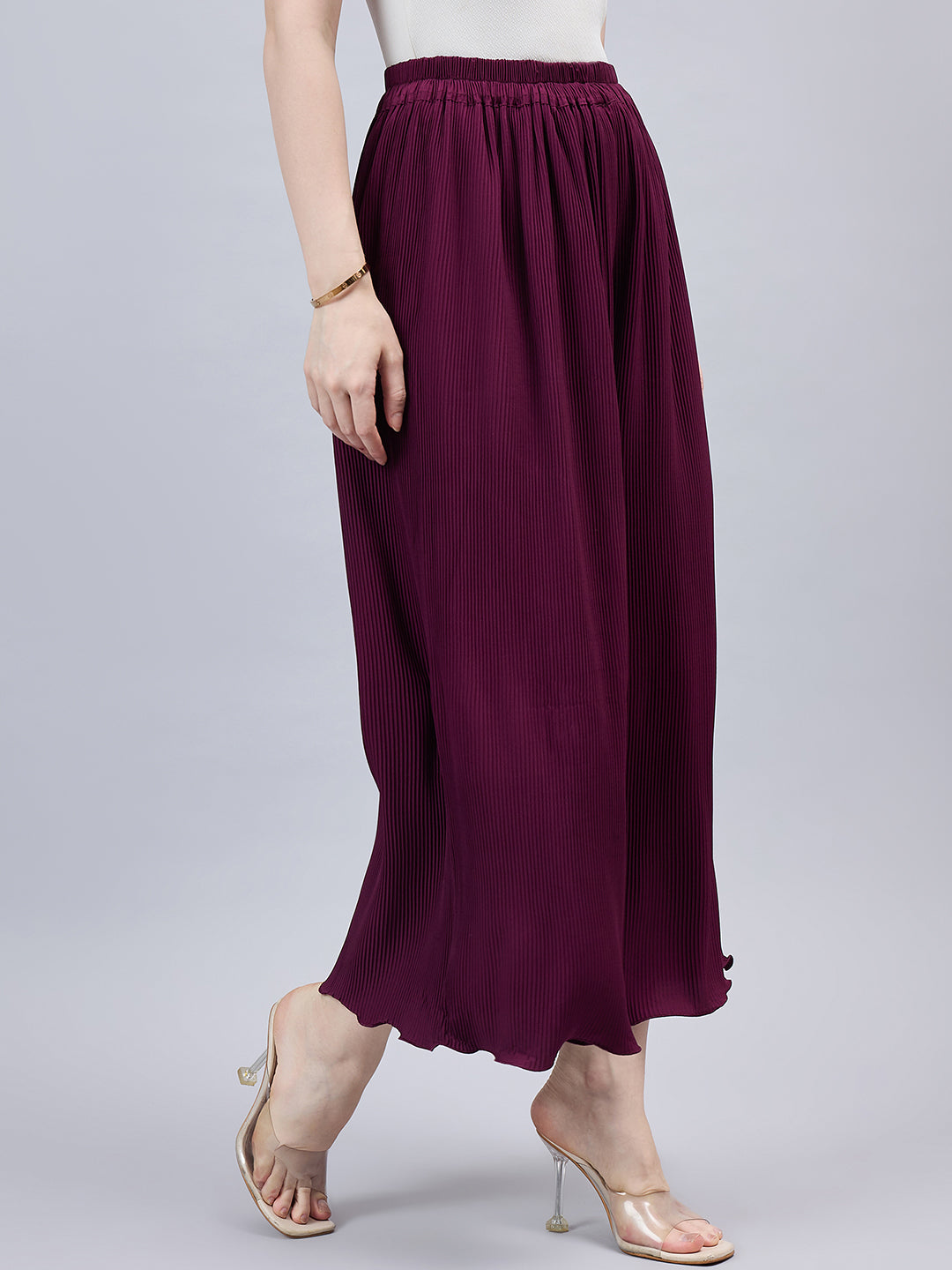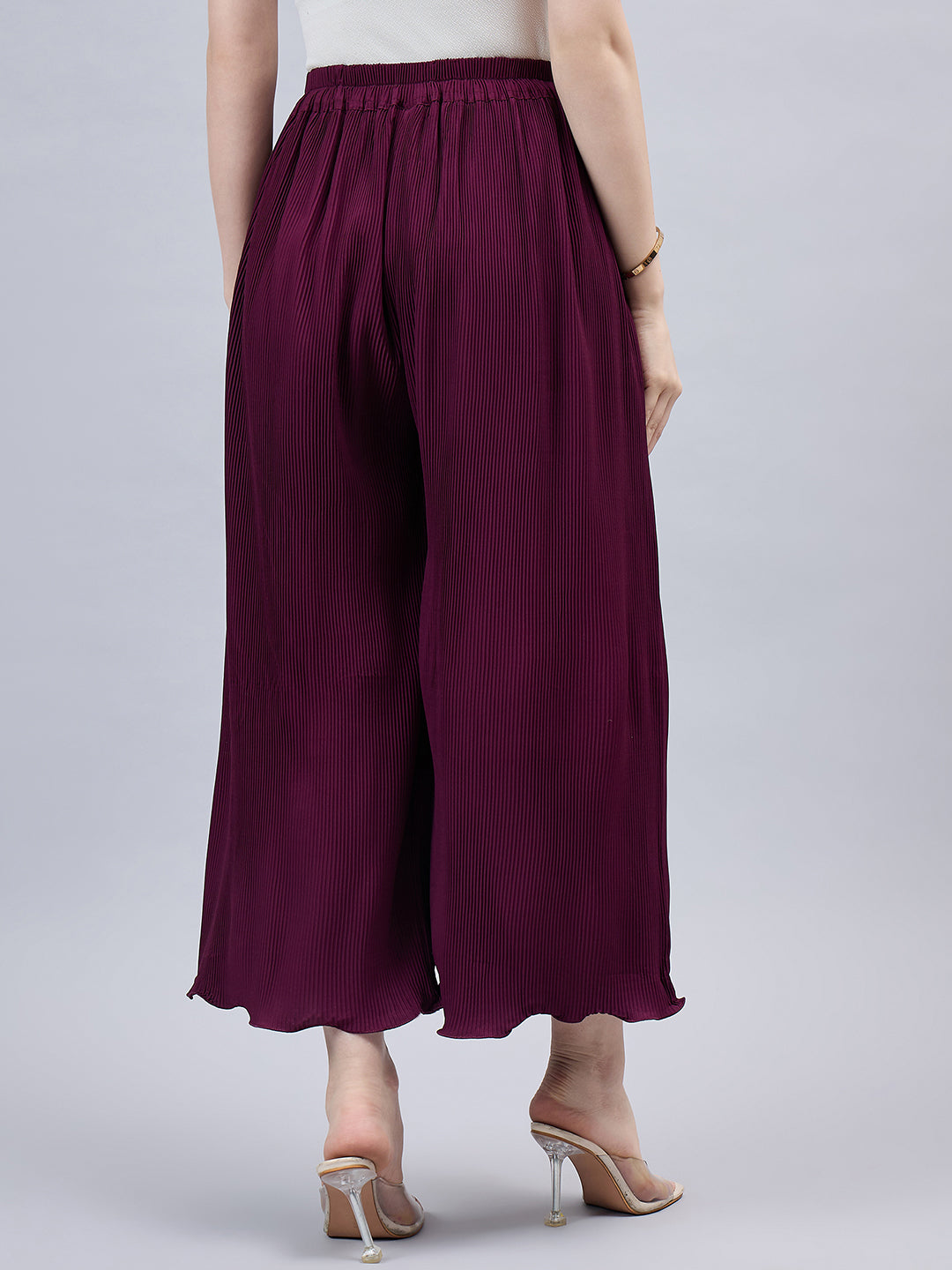 Wine Pleated Chiffon Palazzo