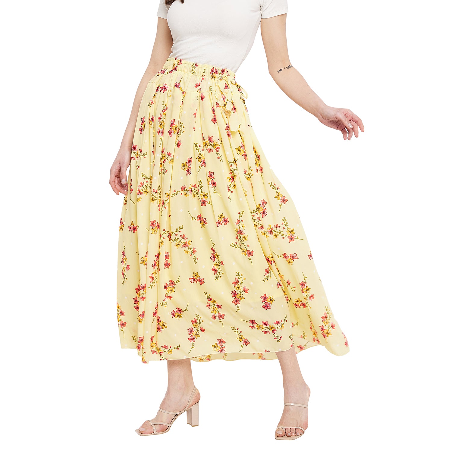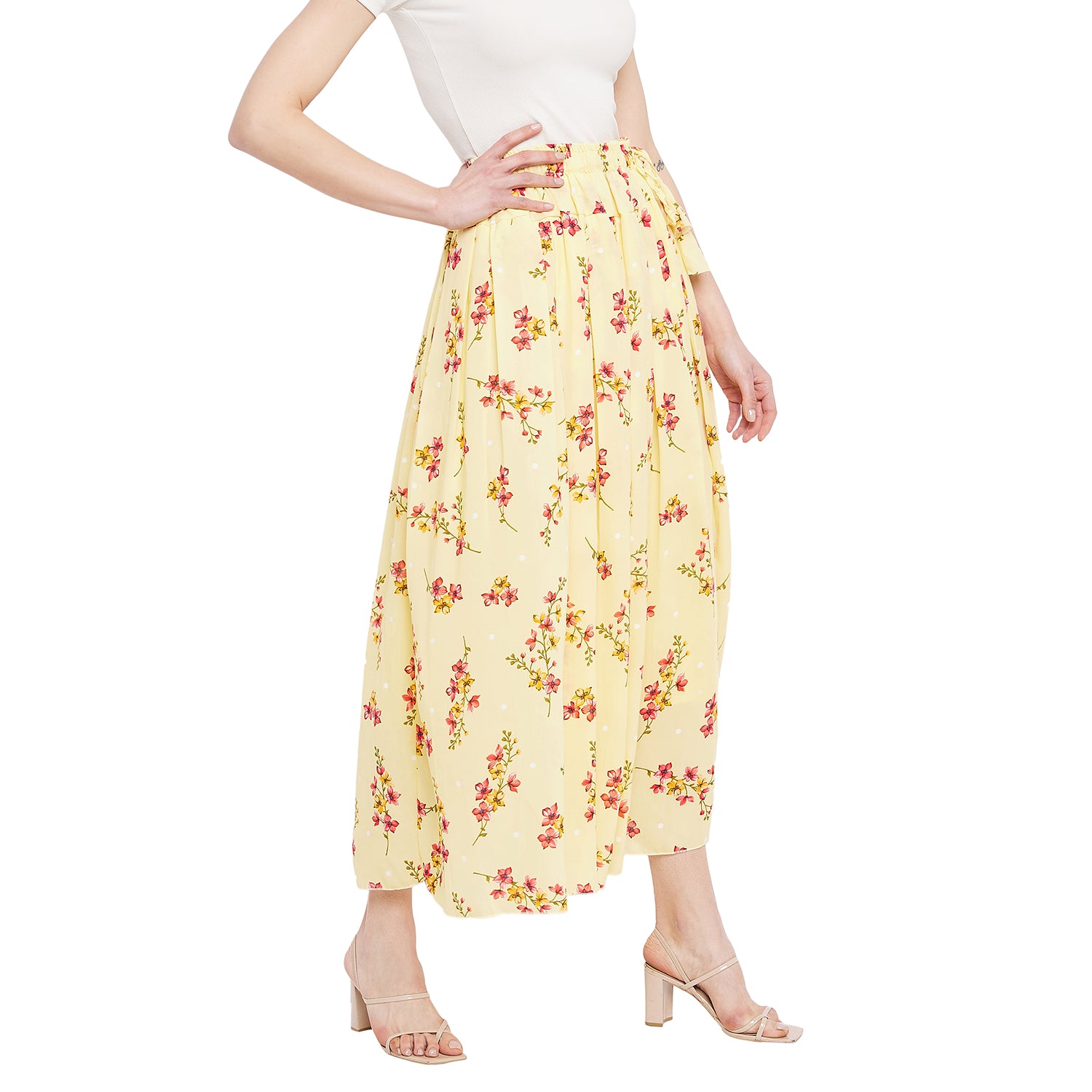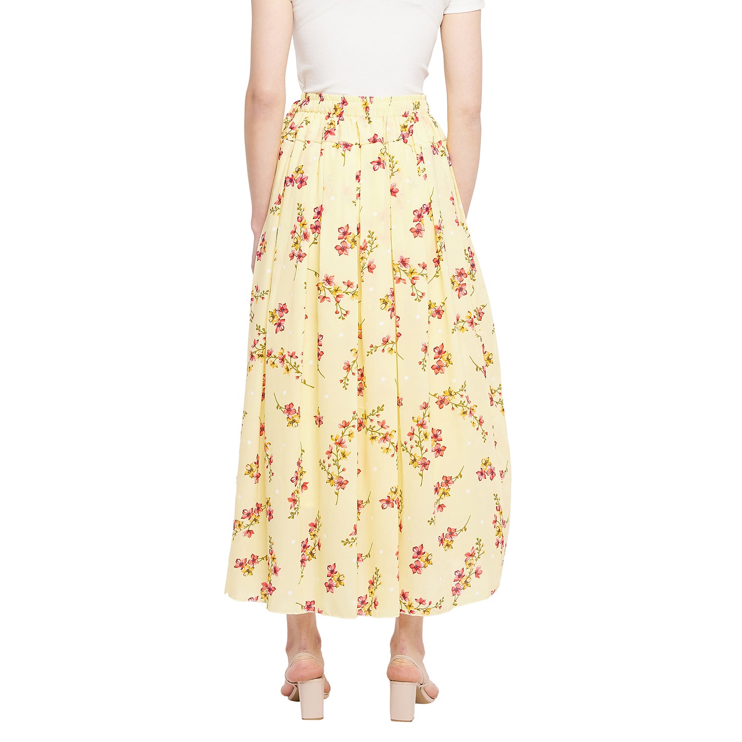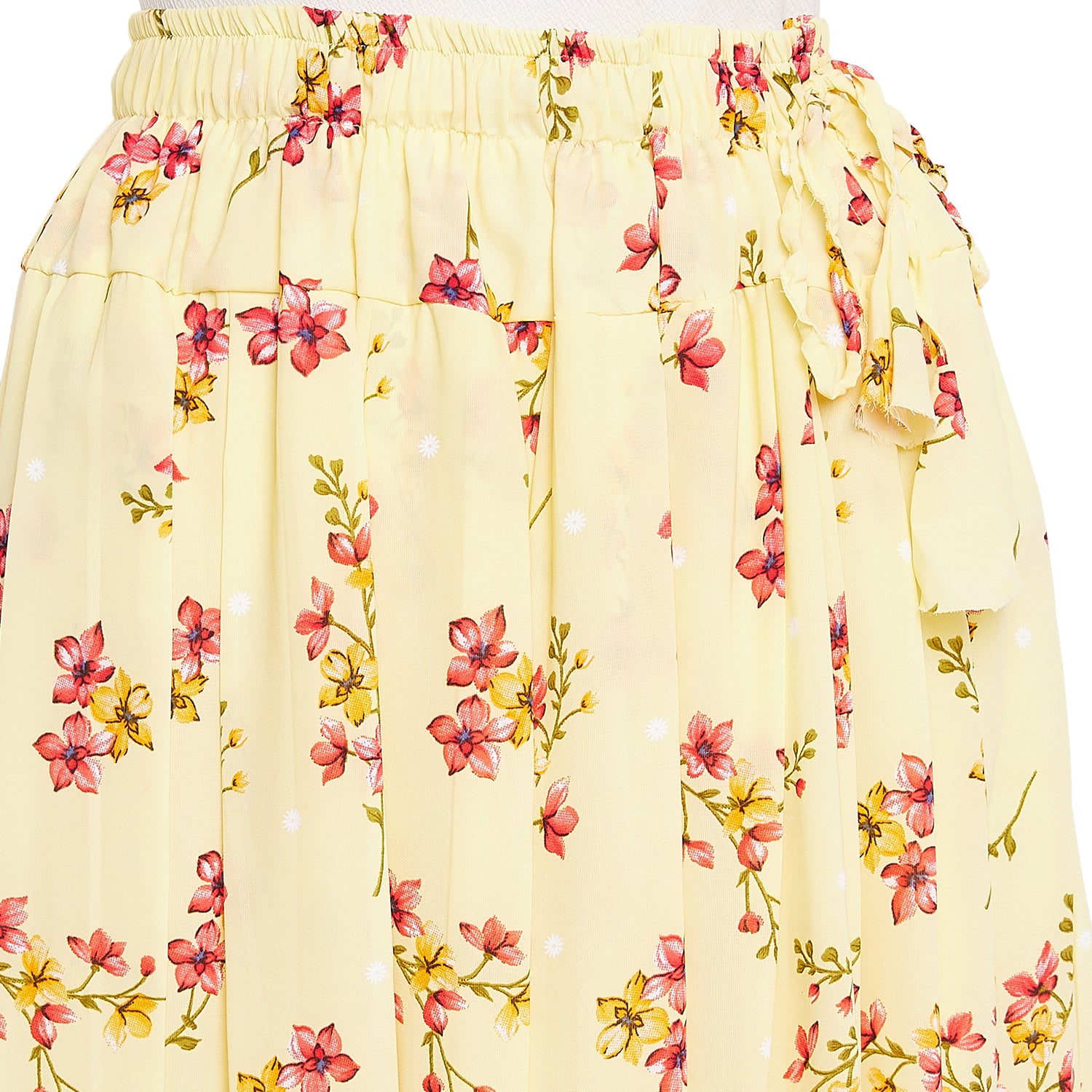 Yellow Peachy Floral Pleat Skirt